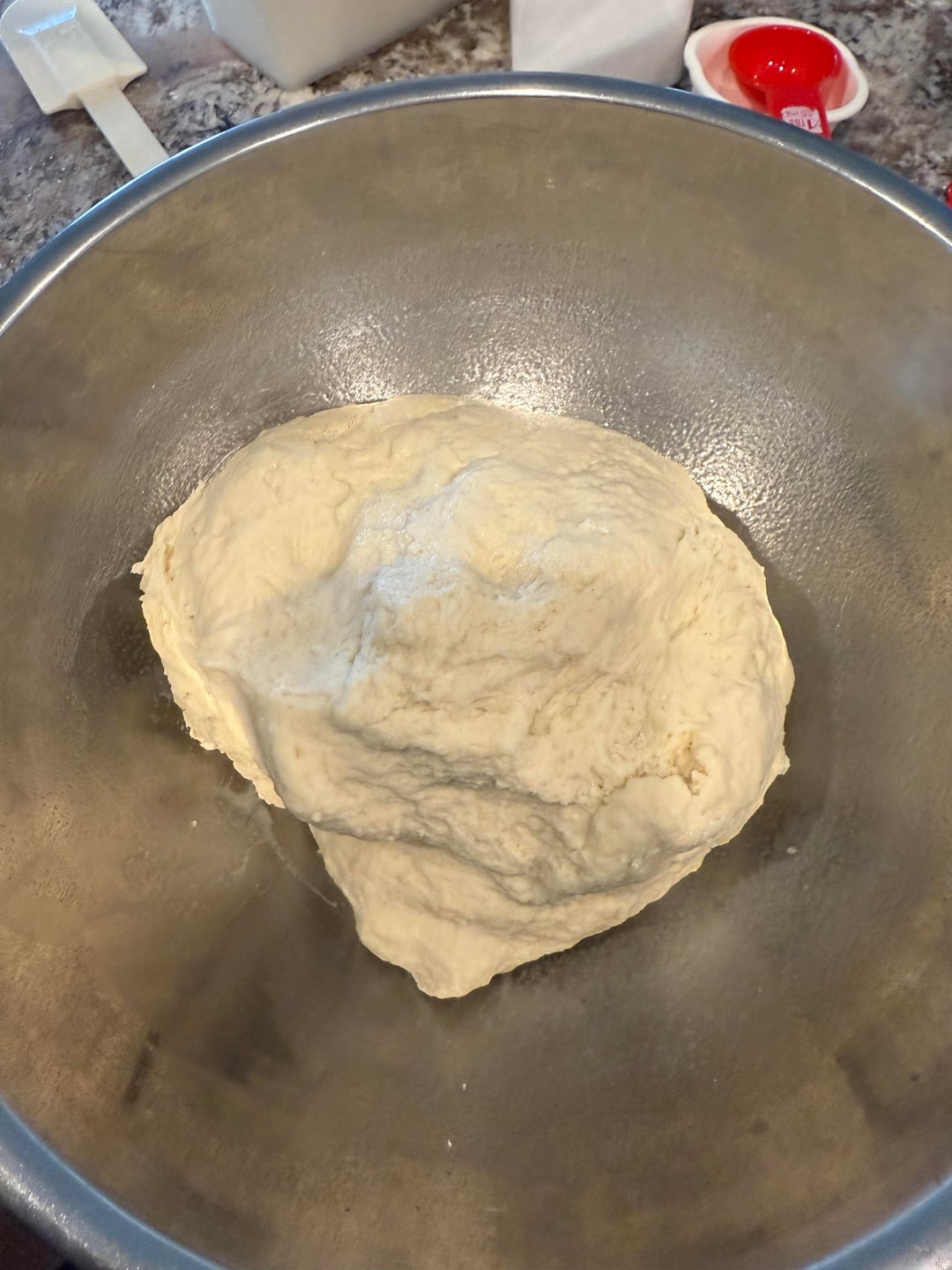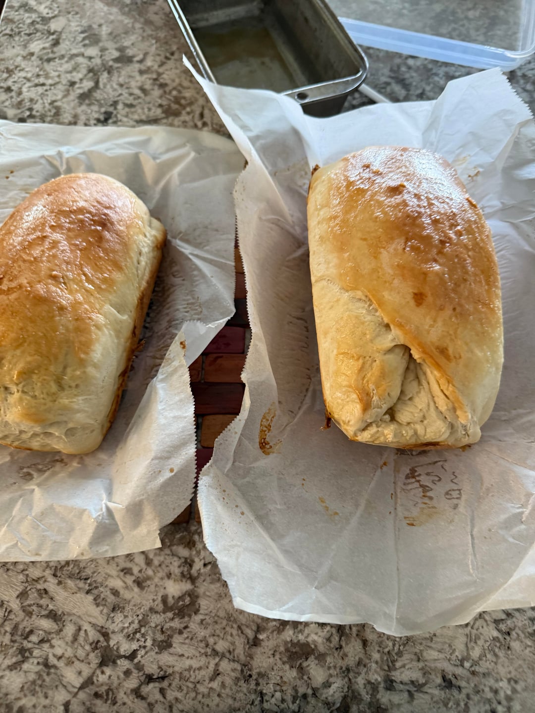 Just a simple white bread recipe I found online. Me ma and I were talking about homemade bread and I decided to try it out. Looks and tastes good, if a tad dense. She calls dense bread “high falutin’”. I’ll try this again next Saturday. Was going to use regular all purpose flour, but found a bag of King Arthur bread flour while shopping for yeast and used that instead.