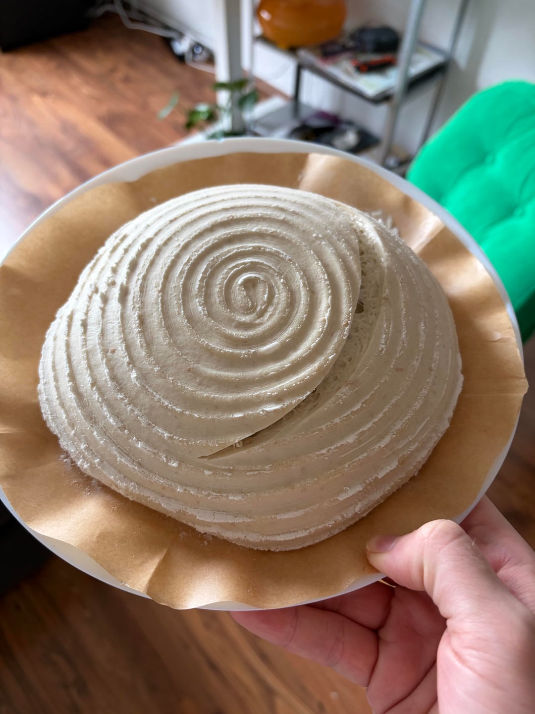 I mixed everything and did 3 stretch and folds every 30 mins.
