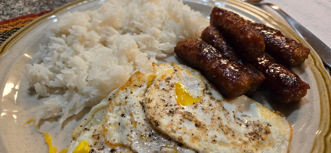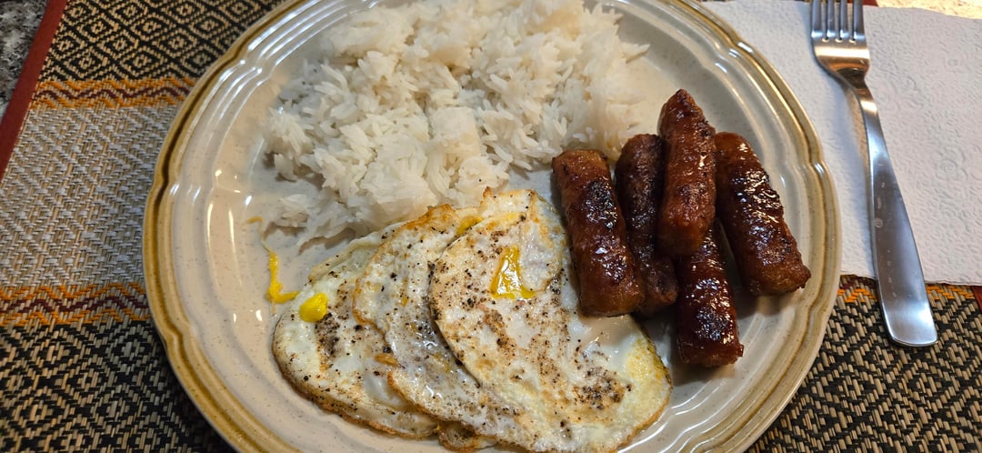 Eggs, longaniza and rice. Yummy breakfast. ❤️