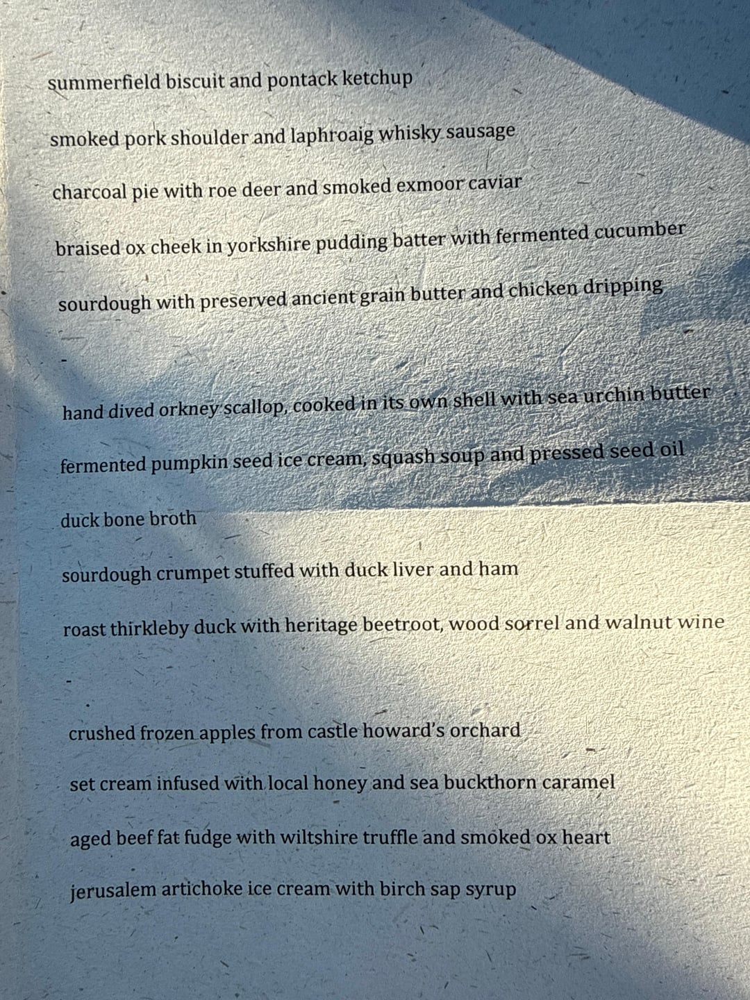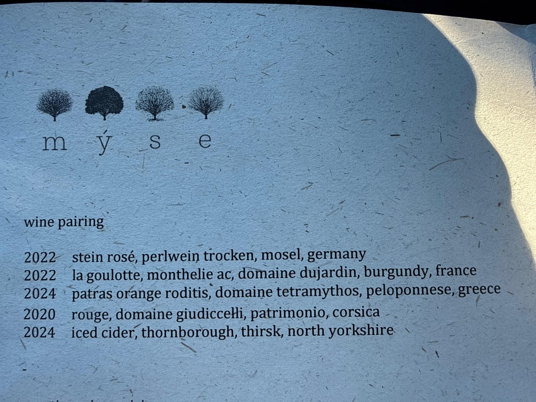 Lunch menu was £115, drink pairing £85, service charge 10%.