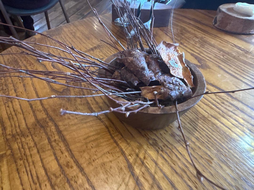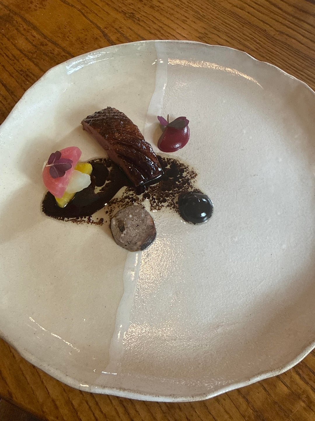 The take on a Yorkshire pudding was interesting, strangely served on a twig however.