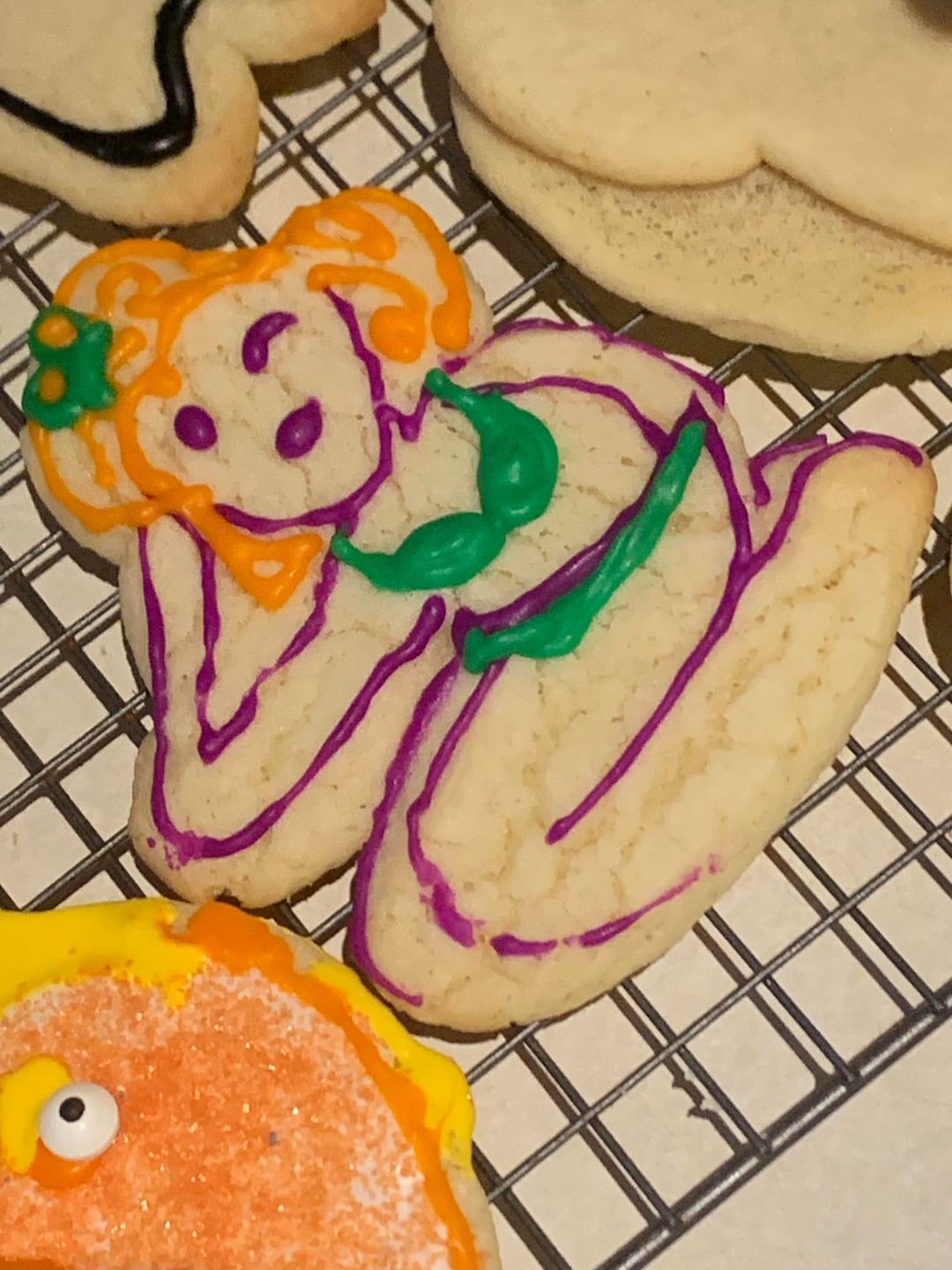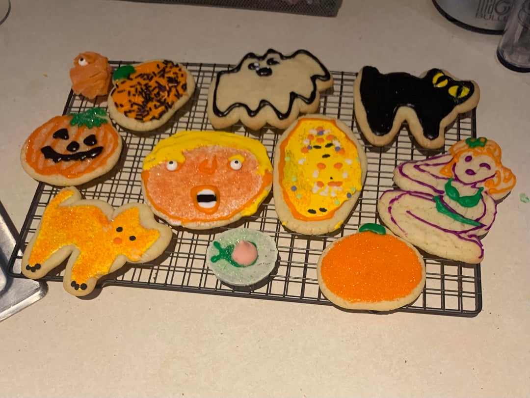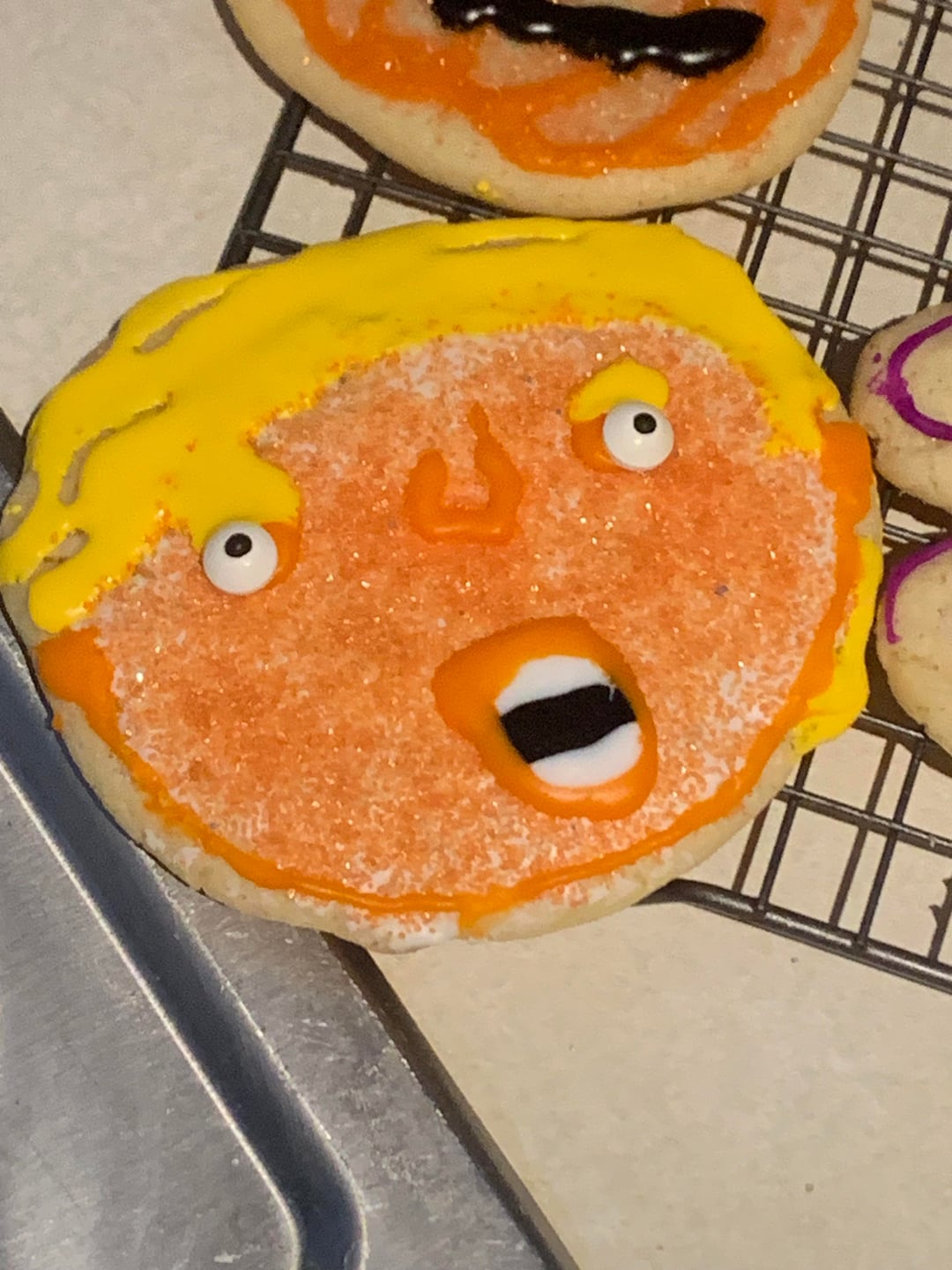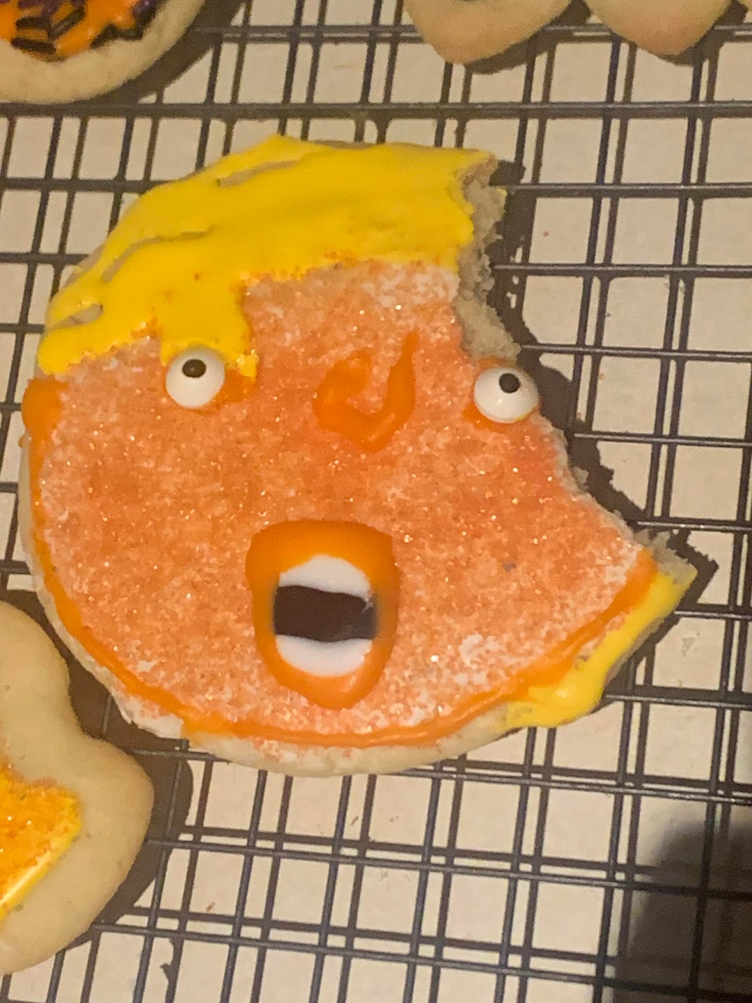 I attempted to make a pin-up girl using the cat cookie cutter turned sideways, but she ended up on the reject rack on the last slide along with Trump 😂 Since most of them came out a litter rounder than anticipated, I turned two of them into our dogs, Snowy and Cocoa as well!