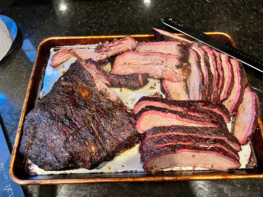 Next time, bring the grill to 275 before putting the beef on, and don’t wrap until the bark is set. If you’re inclined to wrap, you can also wrap and bring it into your oven, which is a great way to save money on fuel.