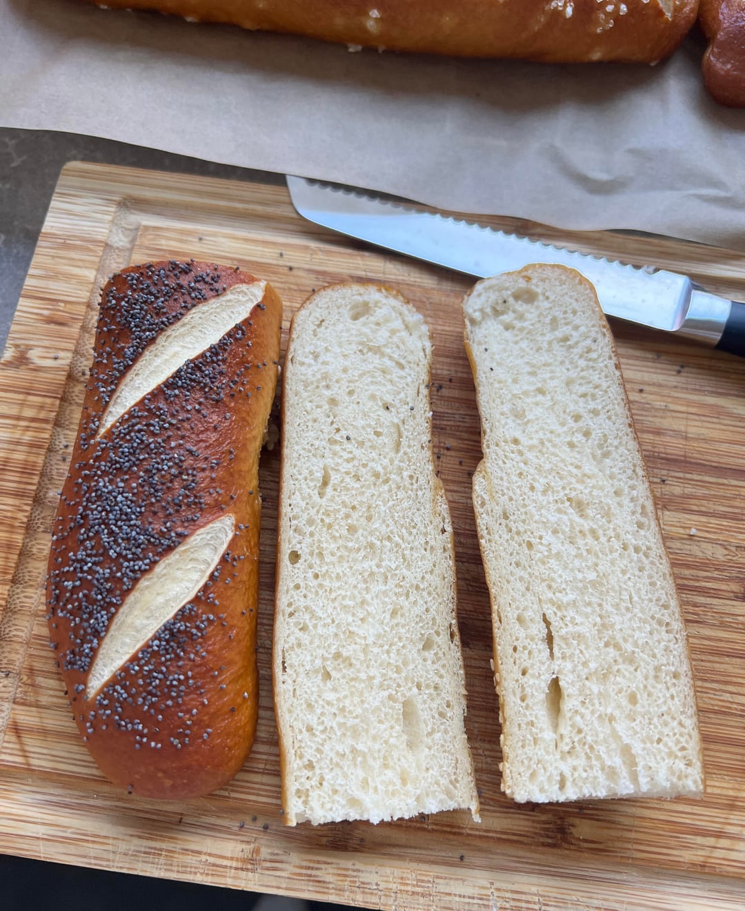 Those look pretty solid! The scoring thing is one of those details you only remember after you pull them out of the oven lol. Nothing beats that pretzel bread smell when they’re baking