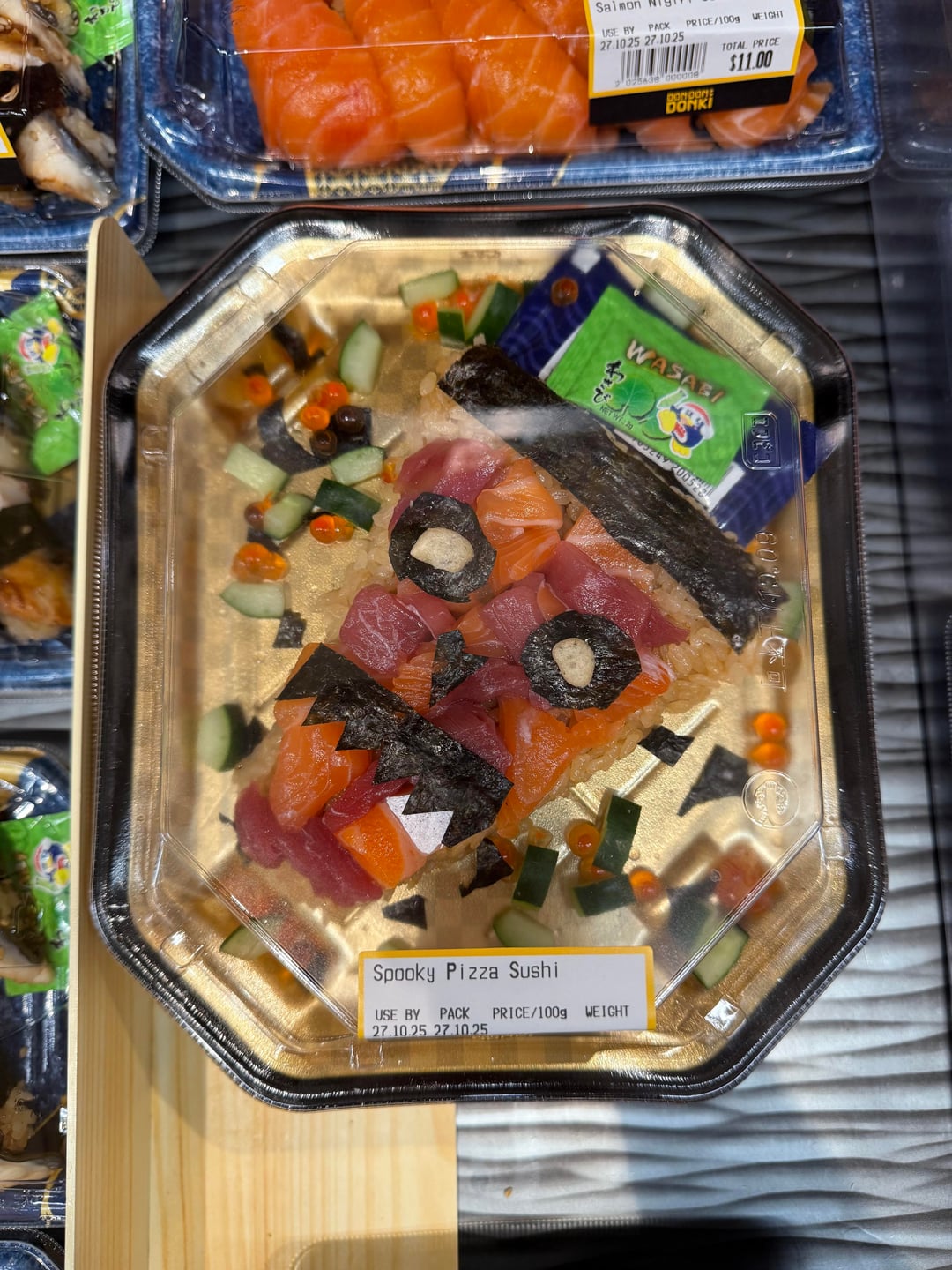 First two pics: Halloween sushi Last pic: California roll, or what they say is a California roll. Didn’t know they came with salmon sashimi in it tbhby can-i-have-a-corgi 4 Comments CumSlurpersAnonymous 3 months ago This is so adorable. I’d buy it for the appearance alone and I don’t even like shrimp in my sushi nor do I like California rolls. Early_Film8213 3 months ago imo nah, I do not want the supermarket to be playing with my food for this long reeefur 3 months ago Love Donki…. is this the one on the island? Qui8gon4jinn 3 months ago Pretty cheap. I’d be 50% higher near me