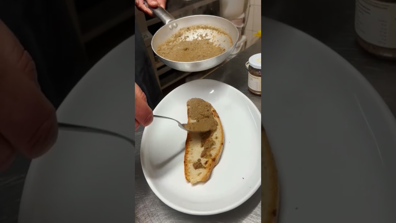 Il crostino nero è il cardine dell’antipasto toscano. Per realizzarlo utilizzando i nostri preparati basta aprire un barattolino, scaldarlo al fuoco con un pochino di acqua in modo da avere una consistenza cremosa. Contemporaneamente fate tostare un po’ di pane toscano e una volta tostato basta spargere il contenuto e otteniamo un bel crostino nero toscano. Nella nostra tradizione c’è chi bagna il pane in un pochino di brodo dopo averlo tostato e c’è anche chi ci mette una spruzzatina di vinzanto o di vino, ma queste sono solo delle piccole varianti. Quello che conta è mangiare un buon crostino nero toscano preparato con il fegato e la carne di cinta senese, il maiale più toscano che c’è. Yeah.