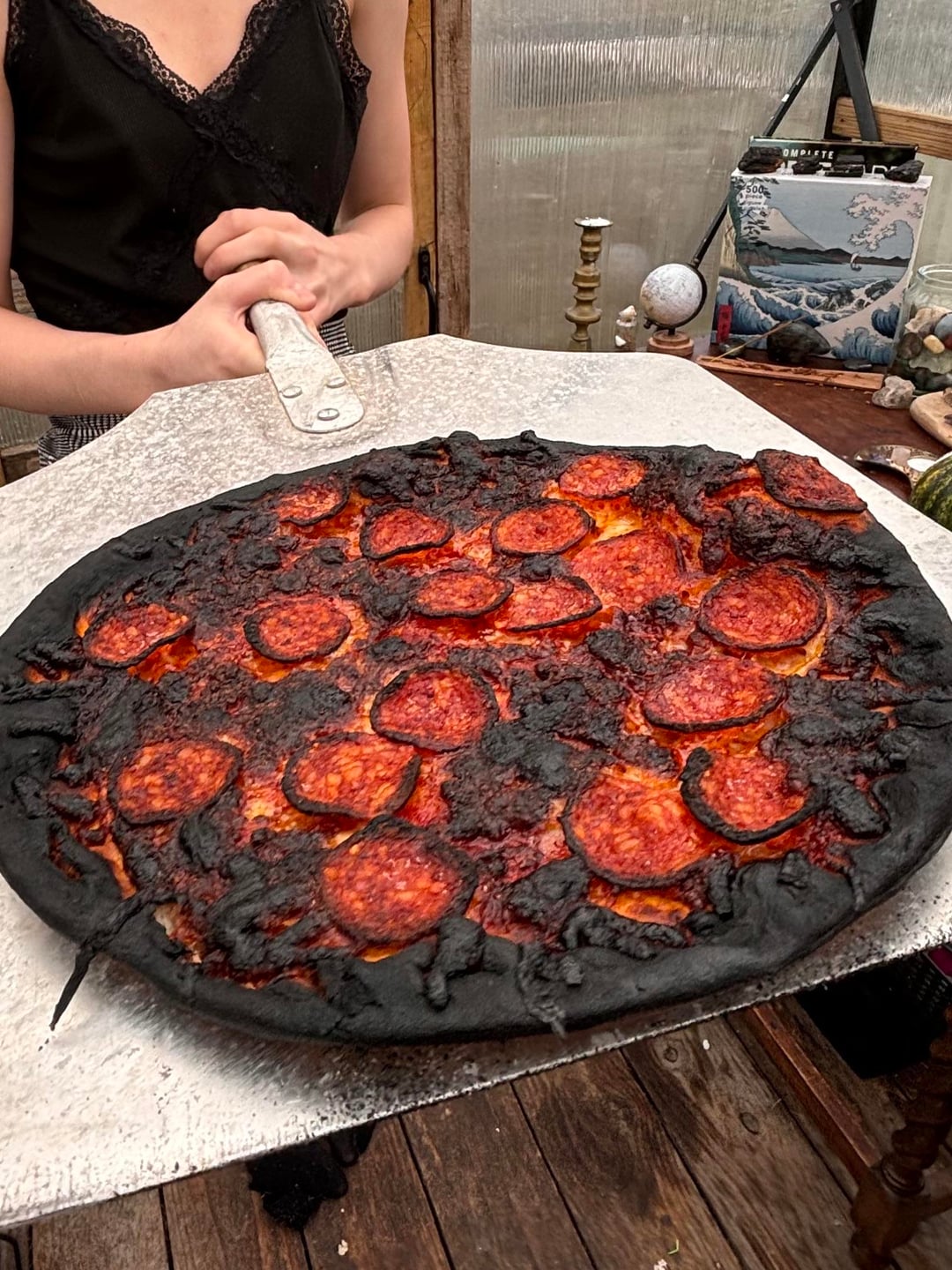 Slow learner, you can’t just leave it, it has to be watched. Those pizza ovens get super hot!