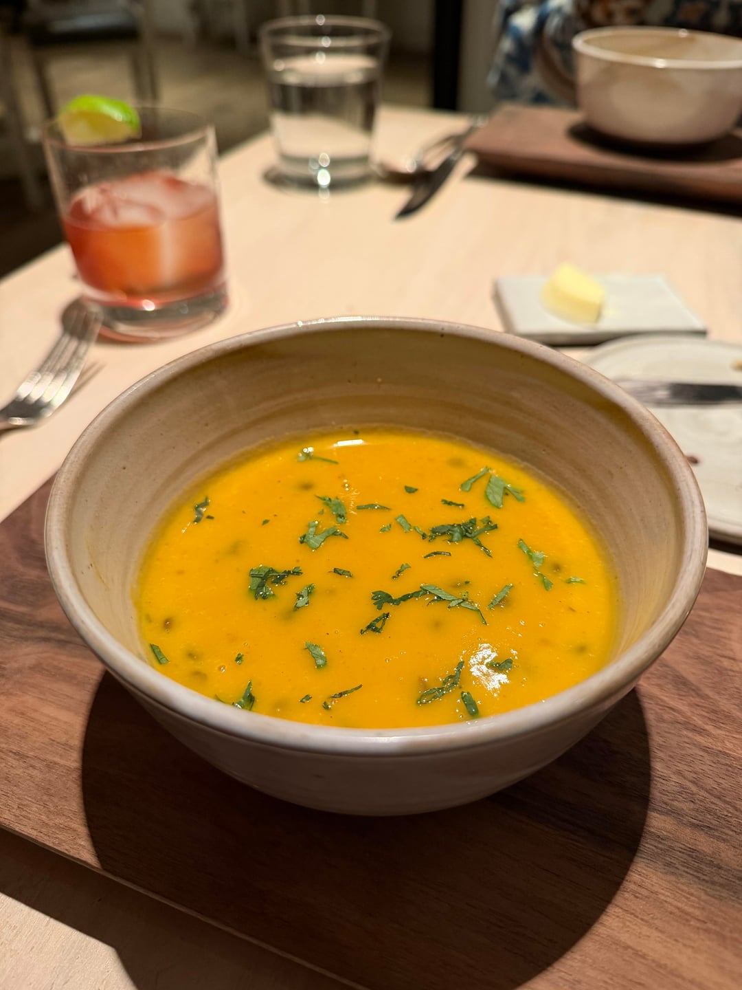 The Lobster French Toast completely lived up to the hype. Rich, perfectly balanced, and easily the highlight of the night. It’s been a staple on their menu for years, and you can tell why. The sweet potato and butterkin soup were both beautifully done and felt very seasonally grounded and we loved the Thai flavors.