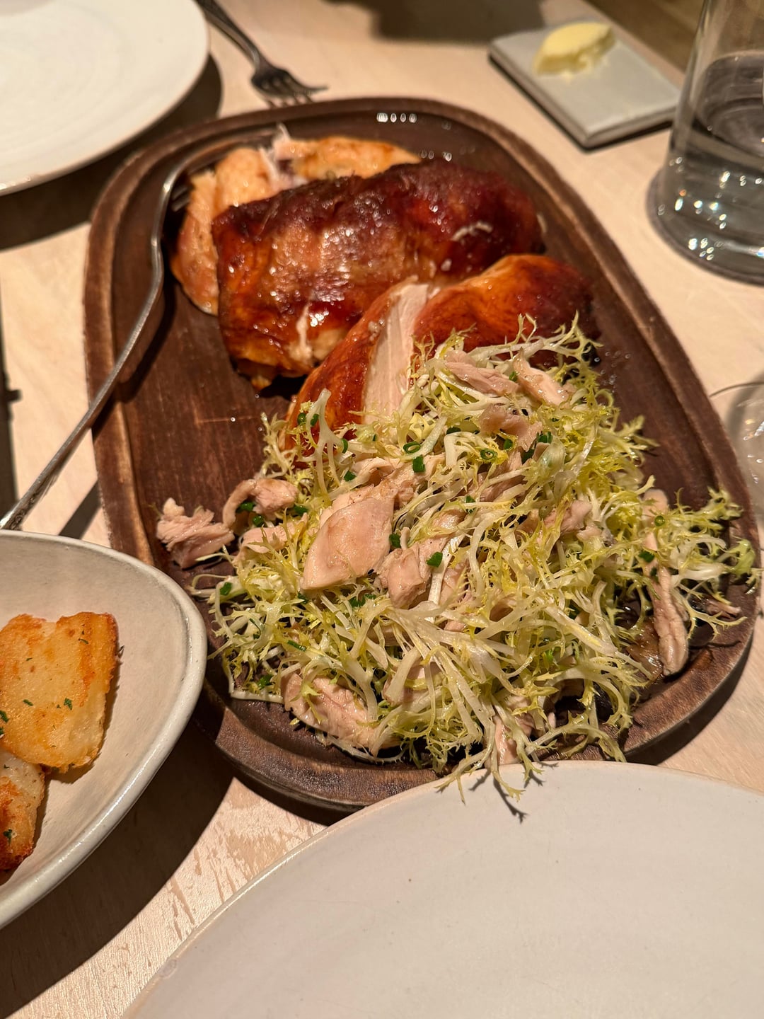 The roast chicken, on the other hand, was a letdown. While the skin was crisp and nicely cooked, it lacked flavor overall. We actually asked for some hot sauce to give it a bit more life, which isn’t something I expected to do at a $70 chicken dish.