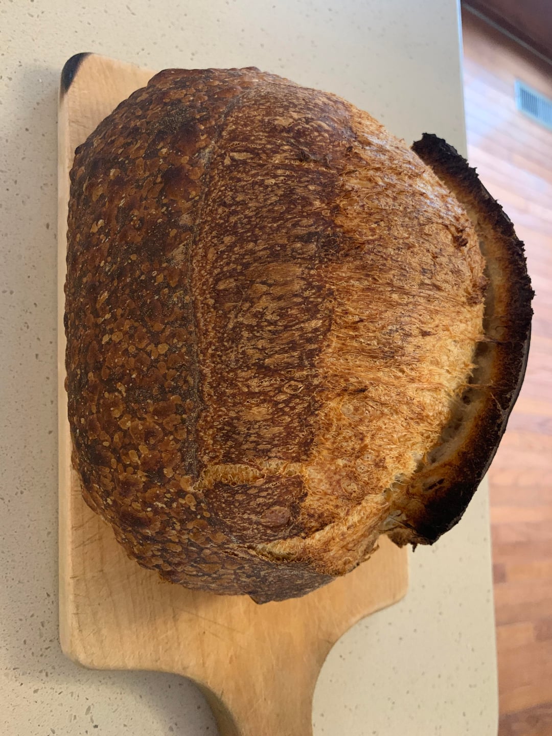 Probably my best loaf i’ve baked so far. There’s a lot of apprehension online about using the stand mixer, but it’s been a game changer for me. It makes shaping so much easier, the structure always comes out great, and everything is so much more consistent. I typically get the dough to the windowpane test at the beginning and then leave it to bulk ferment, with a couple of stretch and folds to gauge its development.