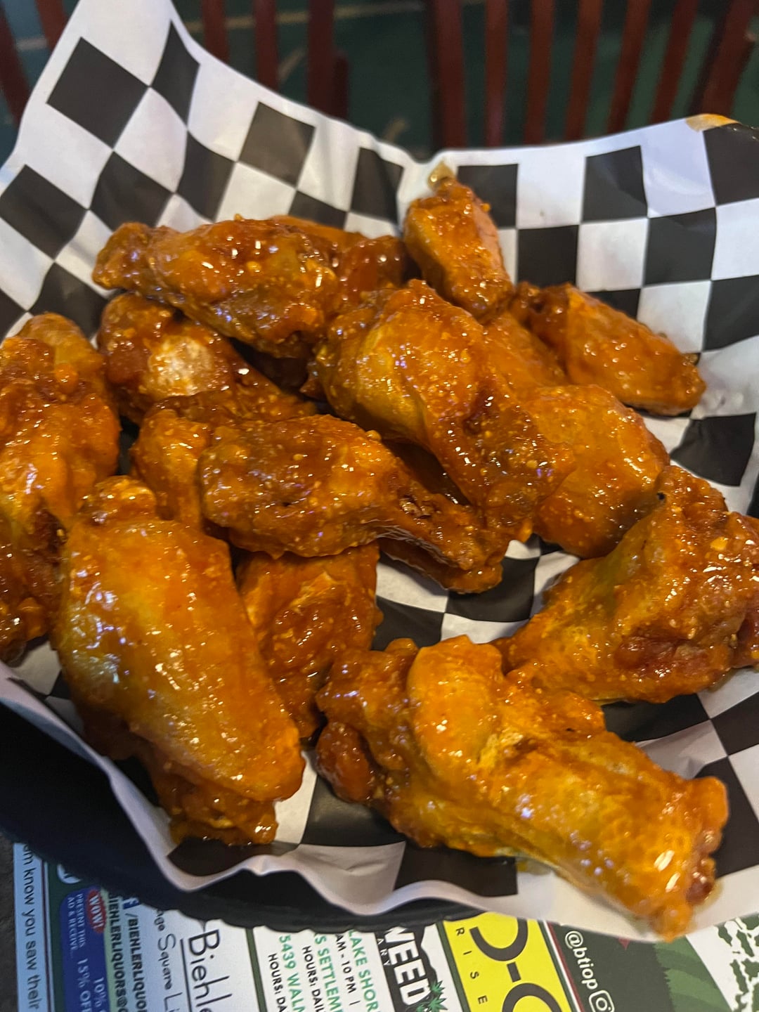 In the shadow of the Bills stadium (The Ralph, forever), and now the secondary shadow of the new stadium being built. Always thought of Big Tree as a below average wing place, but my goodness they surprised me tonight. Wings were awesome. Pics in order are Medium, Cajun Hot, Hot Honey, Murph’s, Cajun BBQ. All of them were above average but Hot Honey and Cajun Hot were my fav. Worth noting the baseline plain old Medium were wayyy better than most normal Mediums around town. Awesome Monday night wing night.