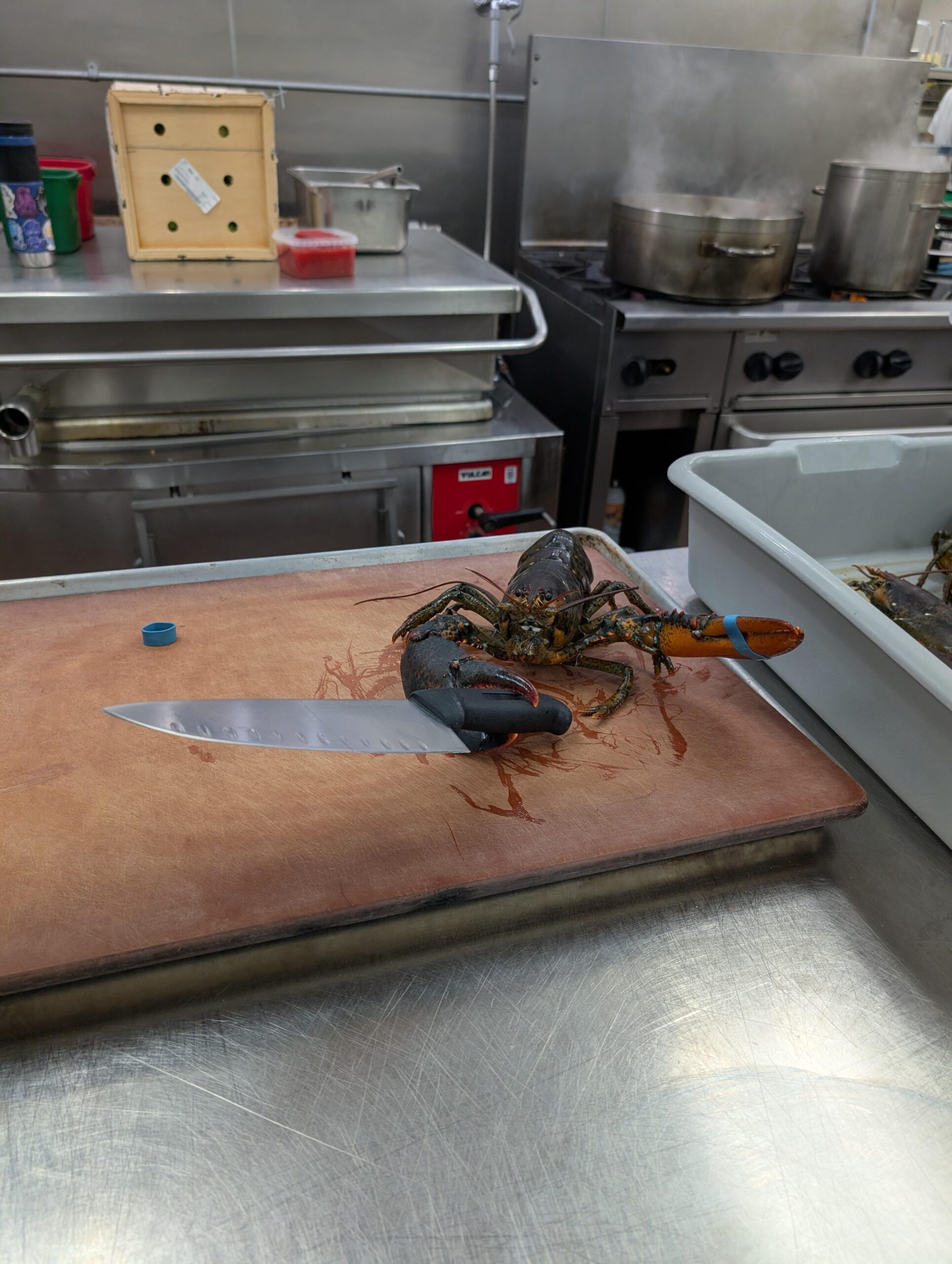 It’s all fun and games until the lobster you gave a knife for a funny photo op stabs the shit out of you.