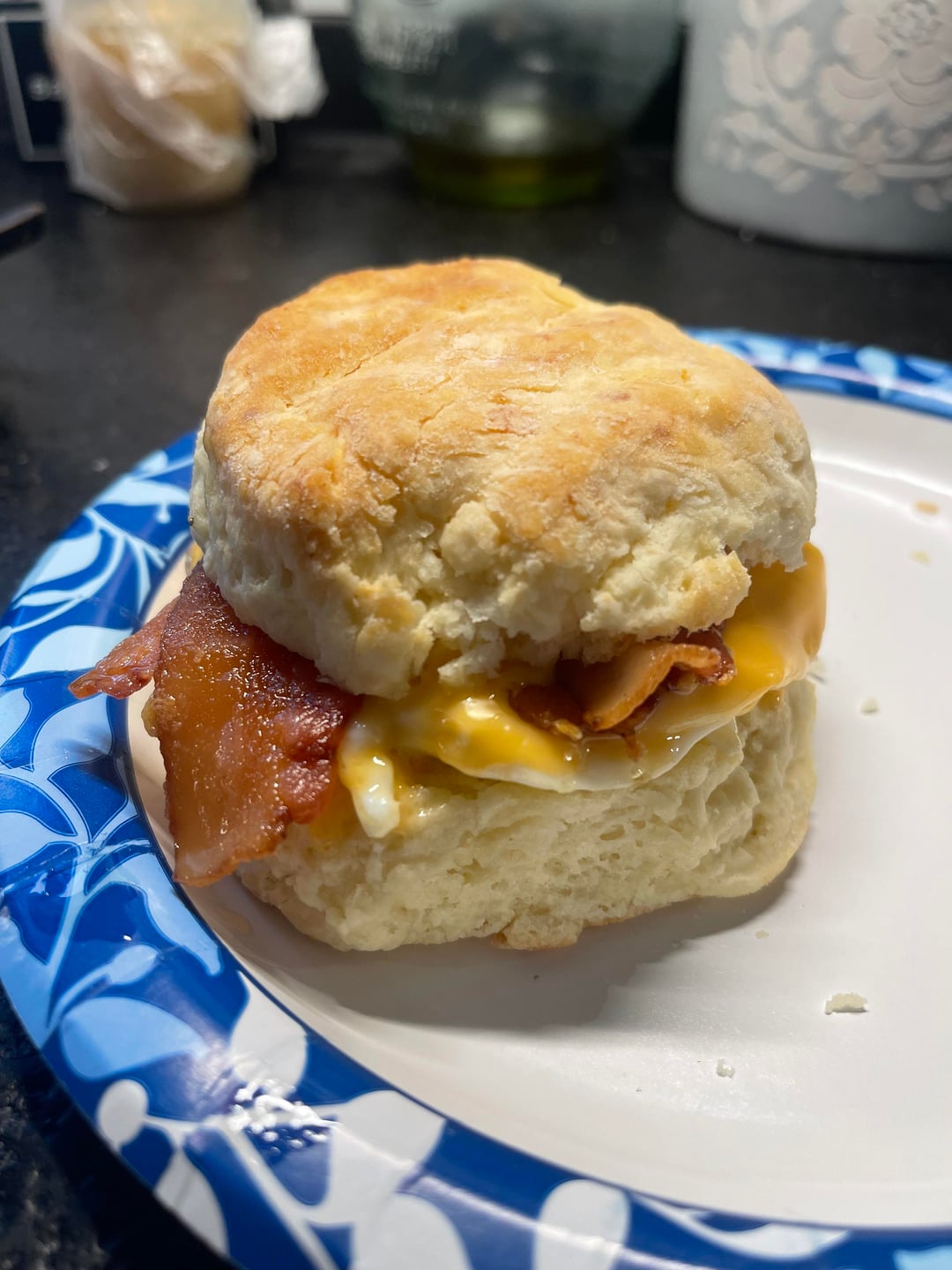 Recently made some Cat Head Biscuits that were incredible.. froze a few biscuits for later. This morning hankering a Bacon Egg and Cheese, so I put my own together. I believe these are good enough to sell out of my trunk at job sites..