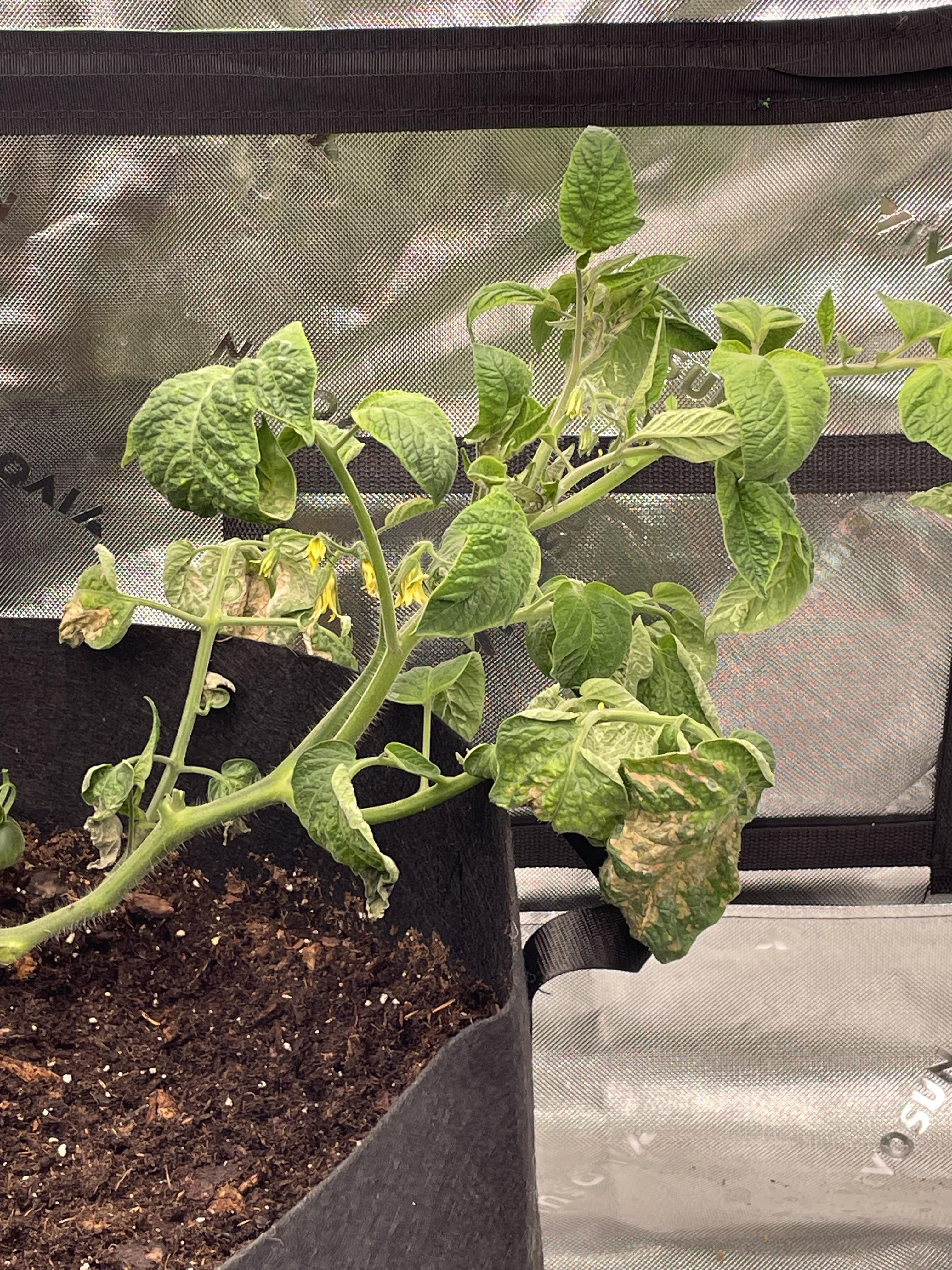 Hello. This is a Stupice plant I'm growing and the leaves turn this way after a bit. Is it a disease? Can I treat it? by Woodpecker-Famous Dining and Cooking