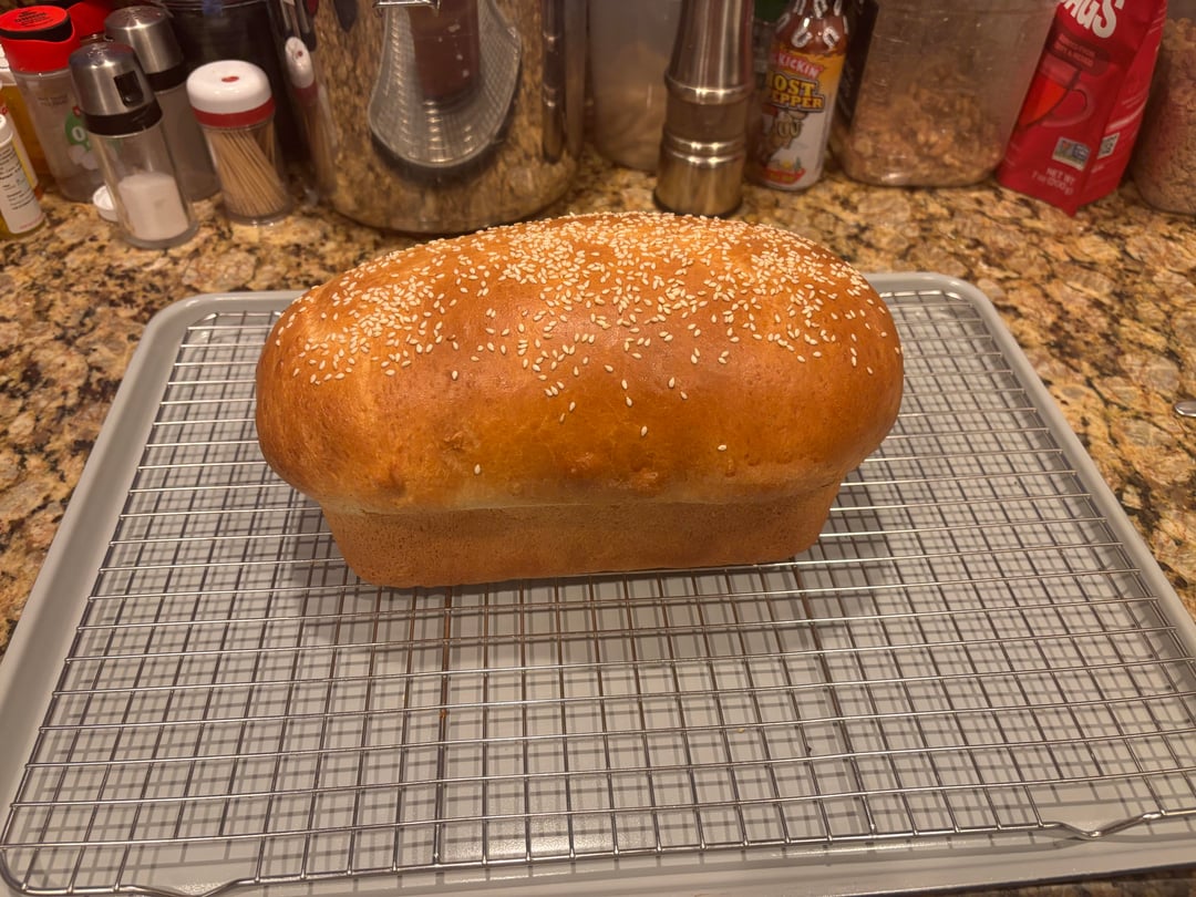 I go to garage sales and thrift shops looking for glass Pyrex bread pans. I now have six baguette pans, five bread pans, and two Benettons. So I never make one loaf at a time. I always plan on one being eaten as soon as they come out of the oven one loaf to have in the kitchen for the next day or so, and the rest go in the freezer and are usually taking care of before the end of the week. My daughter and her husband and the grandchildren live nearby so they often stop by to raid pops pantry.