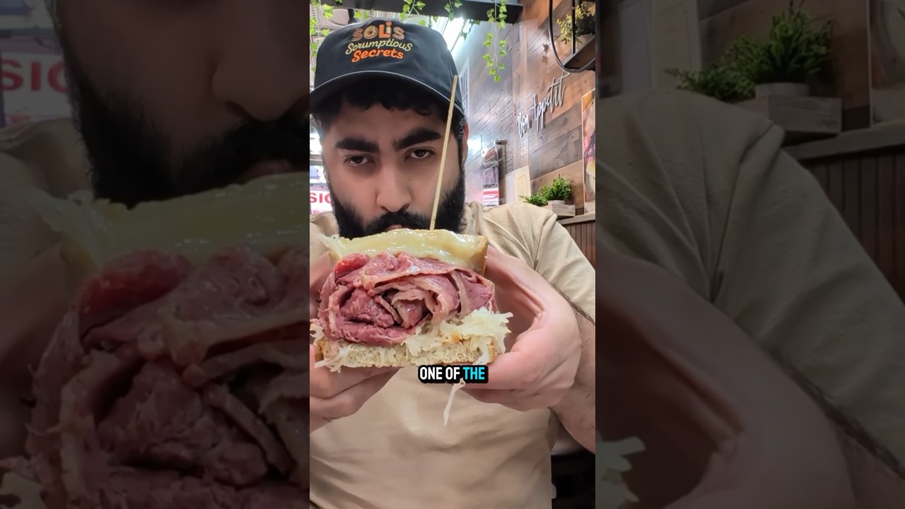 a Jewish deli that’s now 100% halal. Okay, sign me up. Want to know a secret? Sally’s got you. This is David’s Brisket House, originally owned by David, a Russian Jewish man who sold it to his close Muslim Yemen friends. And they converted it into one of the only halal pastrarami shops in New York. I grabbed a pastrami sandwich, of course, a brisket, and the corned beef, which gets slowcooked for 6 plus hours. And I’m not going to lie, this pastrami sandwich really rivals Cats’s. And I can easily say this is one of the best in the city. I also tried the brisket sandwich, which comes with a little cup of meat juice on the side that you can just dip the sandwich right into. And this added a depth of flavor I’ve truly never experienced before. To end it off, we grabbed the corn beef reuben sandwich, which gets topped with melted cheese and sauerkraut. And I think this is easily one of the best options here. I also had to grab a Palestina soda to support. If you’re looking for some good hal food, make your way out to David’s Brisket House ASAP. Secrets out. Follow for more secrets like