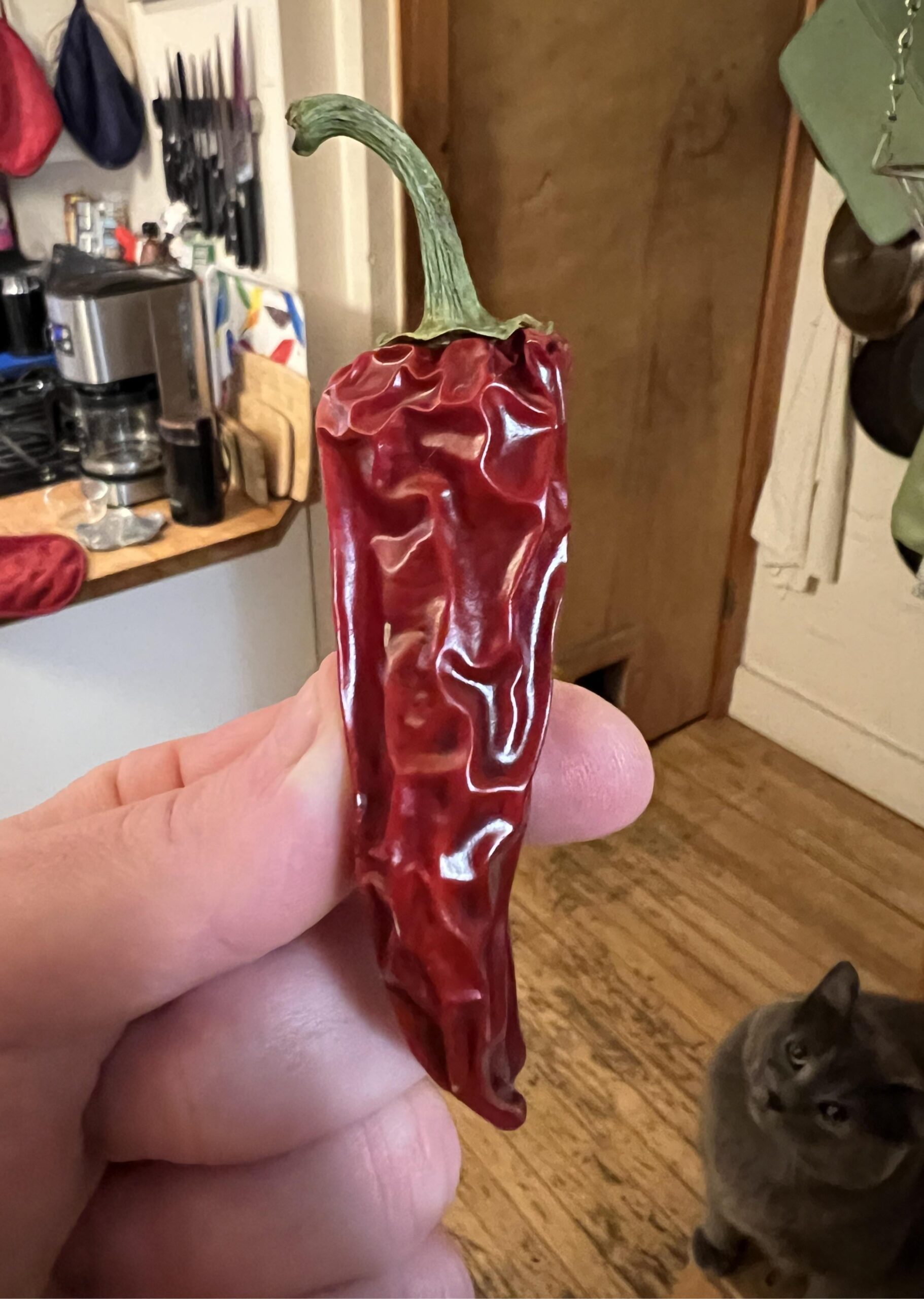 All joking aside I’d probably break it open and see if it molded on the inside. I’ve had peppers that look fine outside and had mold inside. I don’t understand the witchcraft.