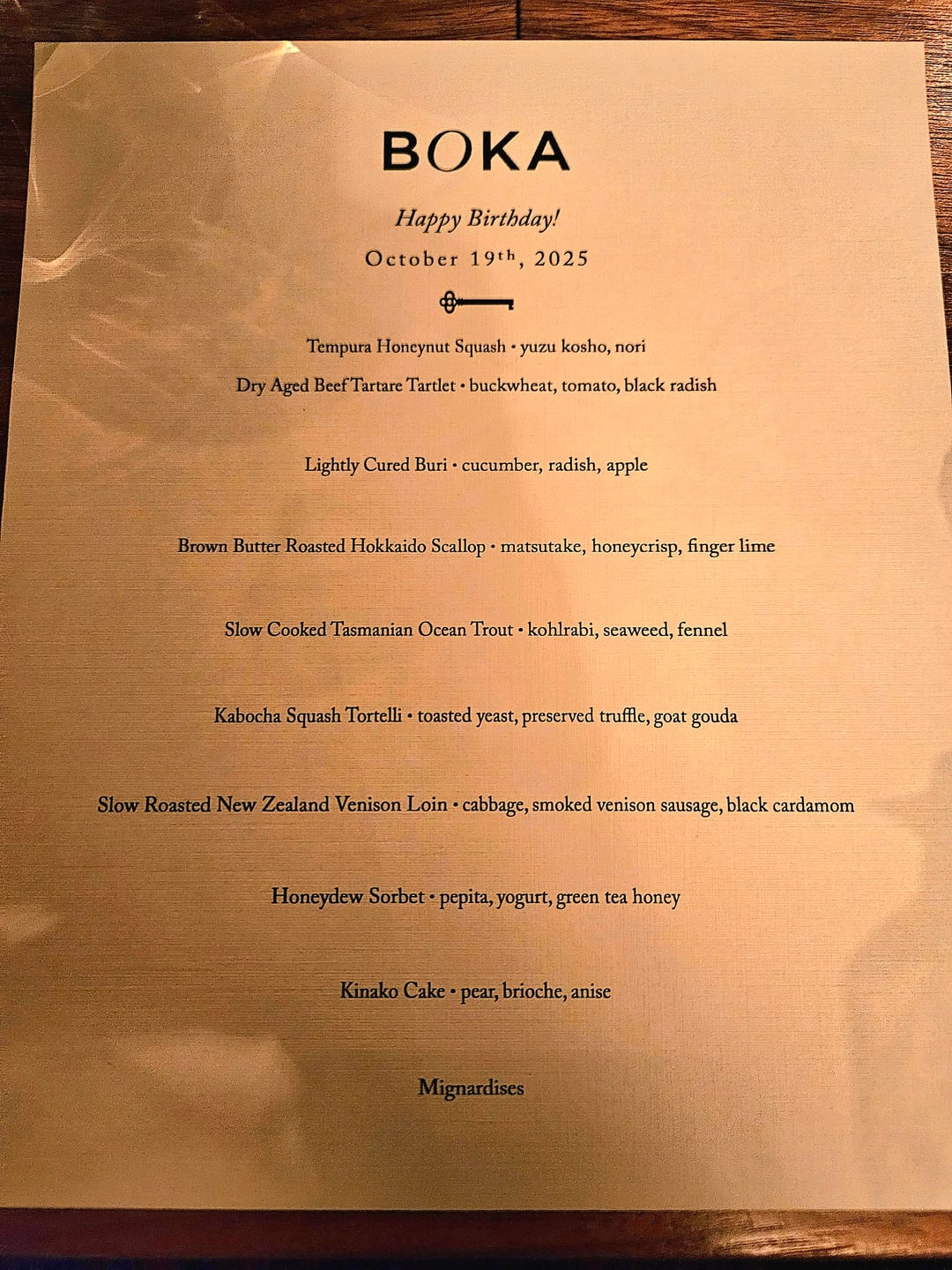 Did the tasting menu at Boka for my birthday over the weekend and everything was incredible. Was going to list some of my favorites but would end up just highlighting the entire menu. Everything was perfectly cooked, balanced, and seasoned. And the service was tremendous!