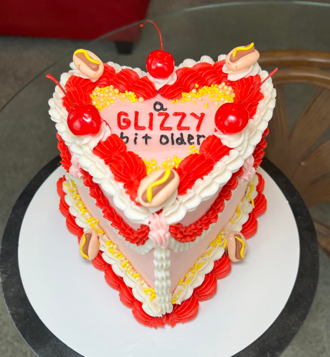 Made the silliest cake the other day for someone named Elizabeth, whose nickname is Glizzy – the fondant mini hot dogs are personally my favorite part (: