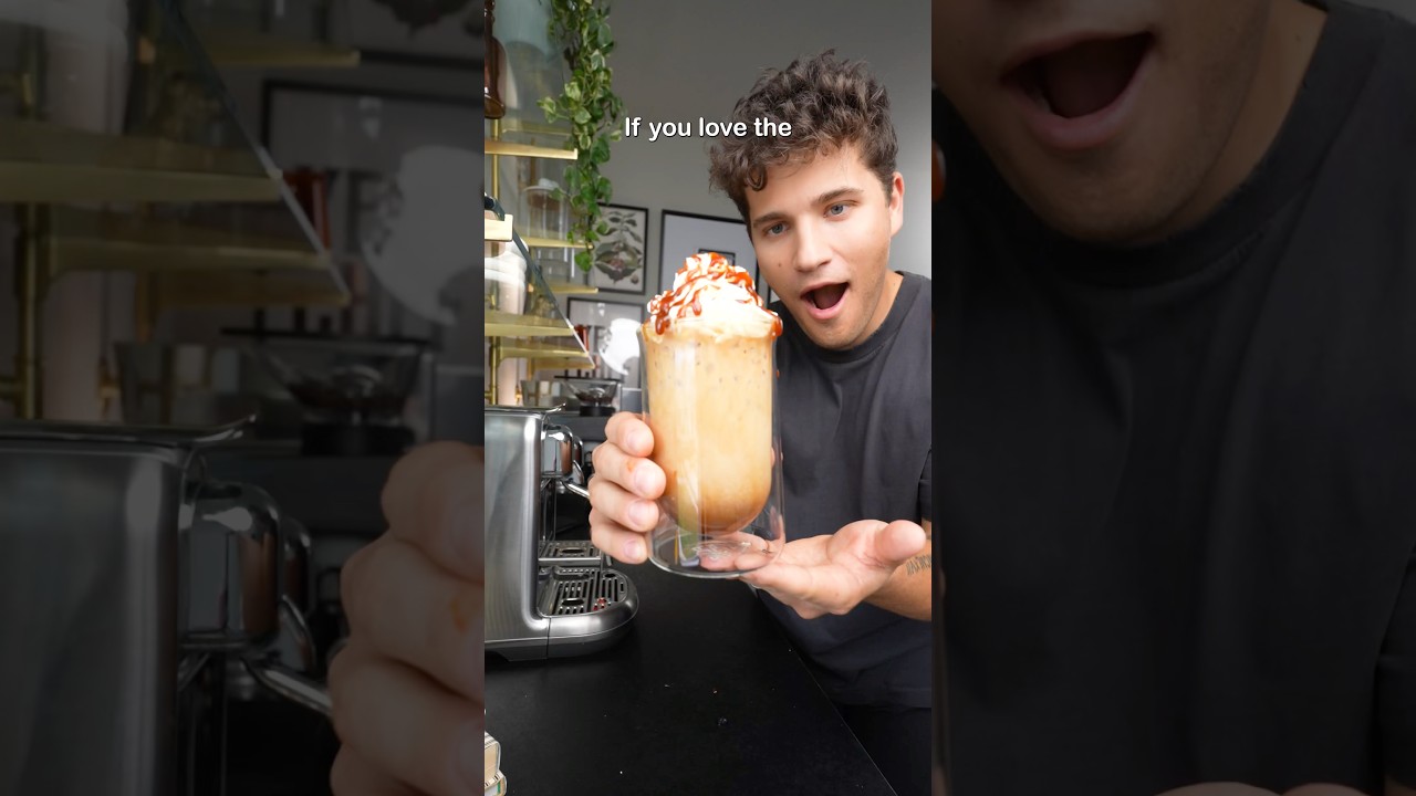 If you love the Starbucks caramel brulee lattes, you can make that same sauce at home for almost nothing. Grab a pot with high walls and add 45 g of water, 15 g of corn syrup, and 200 g of sugar. Throw it over medium heat until it starts to bubble around the edges. And as soon as the sugar is fully dissolved, crank the heat up to medium high. It’ll boil a lot, and after 6 minutes will be this deep amber color. Turn the heat off and add 120 g of heavy cream, 45 g of salted butter, and 14 g of vanilla extract. Once the butter fully melts, it turns into this glossy, buttery caramel that I usually spoon into a cup and pull some espresso. I’ll pour this over some ice and top it off with milk, whipped cream, and a little bit more of that caramel sauce. And I promise if you try this, you’ll realize you’ll stop spending $6 at Starbucks. So,