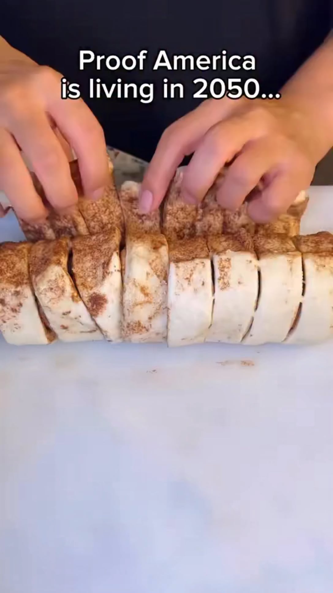 How is a disgusting combination of currently available products proof that the US is in 2050? At least with Japan, for example, they use fancy vending machines that the US doesn’t have. Not an unhealthy blend of pillsbury ready to bake products with M&Ms and Bacon. I’, in my 50s, those products have been available my entire life.