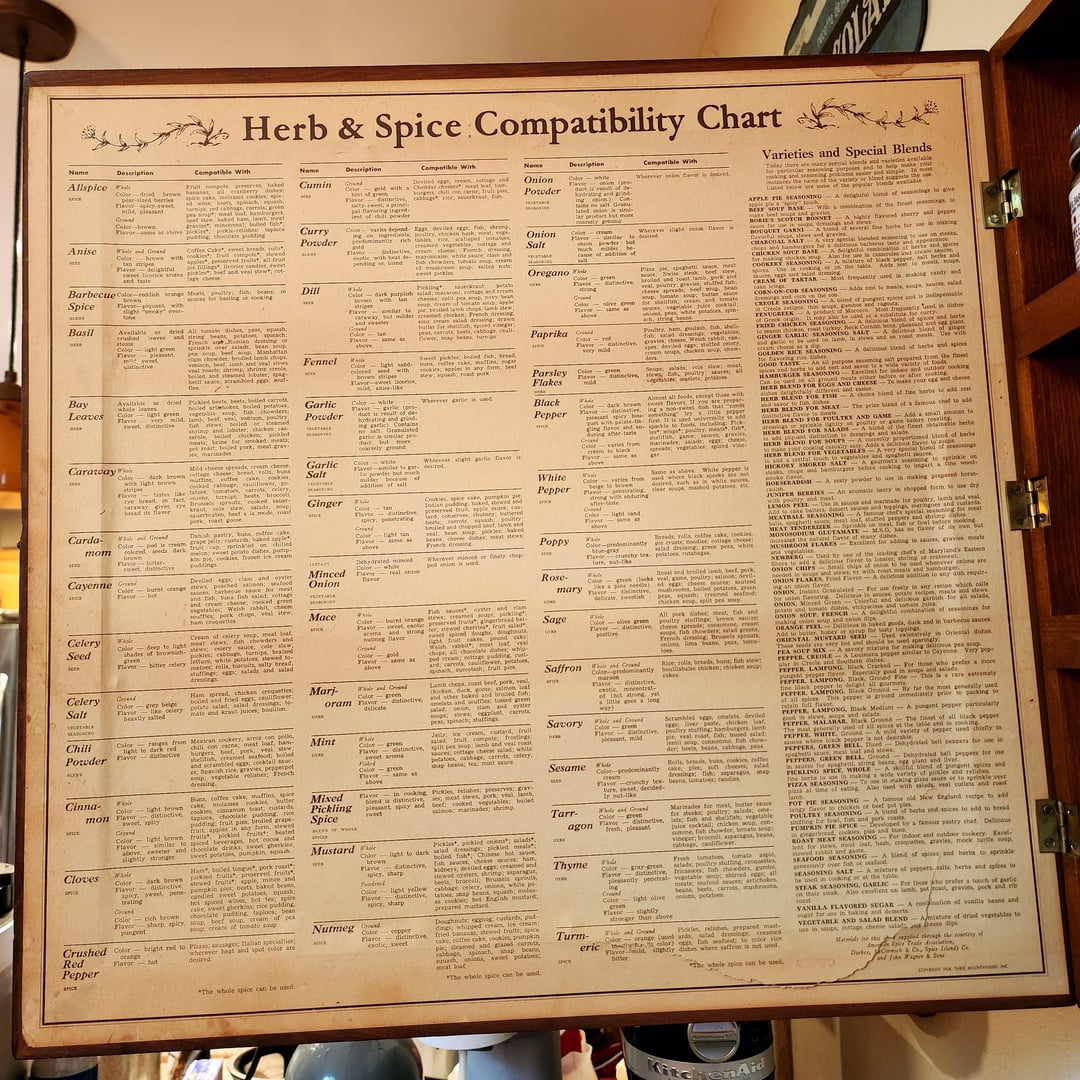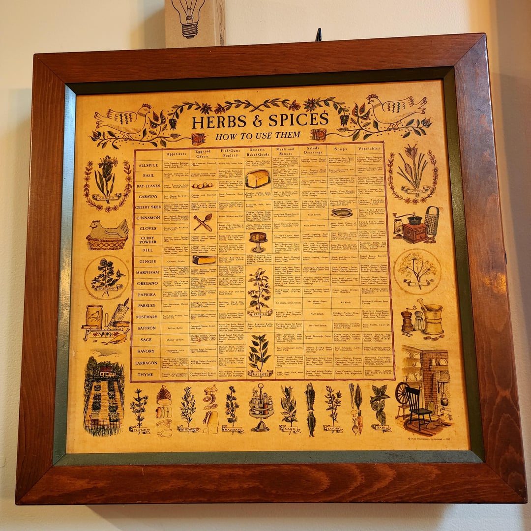 It’s in such great condition too! We had one growing up. We used it a lot! I remember standing in our kitchen with my mom reading the text on the back looking for spice advice for our dinner. My sister took it when she moved out and I searched for another one for a long time before finding one on Etsy. These are so cool.