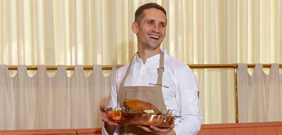 Paris native Chef Christophe De Lellis at Mamani, the latest hospitality project from Dallas-based Feels Like Home founders and brothers Brandon and Henry Cohanim. The “bistronomie-style” concept’s restaurant, designed by London-based Bryan O’Sullivan Studio, opened September 2 in Uptown Dallas’ Quad development.