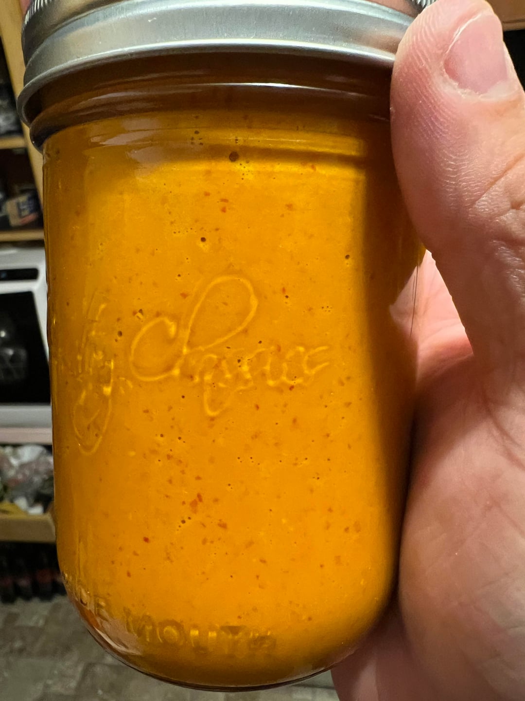 Lacto fermented hot sauce made from the last harvest of my pepper garden. Tons of pepper varieties from Jalapeño to Carolina reaper. I included last years as well to see the difference! I still have more of last years aging in some glass bottles. Pretty crazy how much the taste has changed since I bottled it. This year I sent one through a mesh strainer and one I kept “chunky” like last year’s batch.