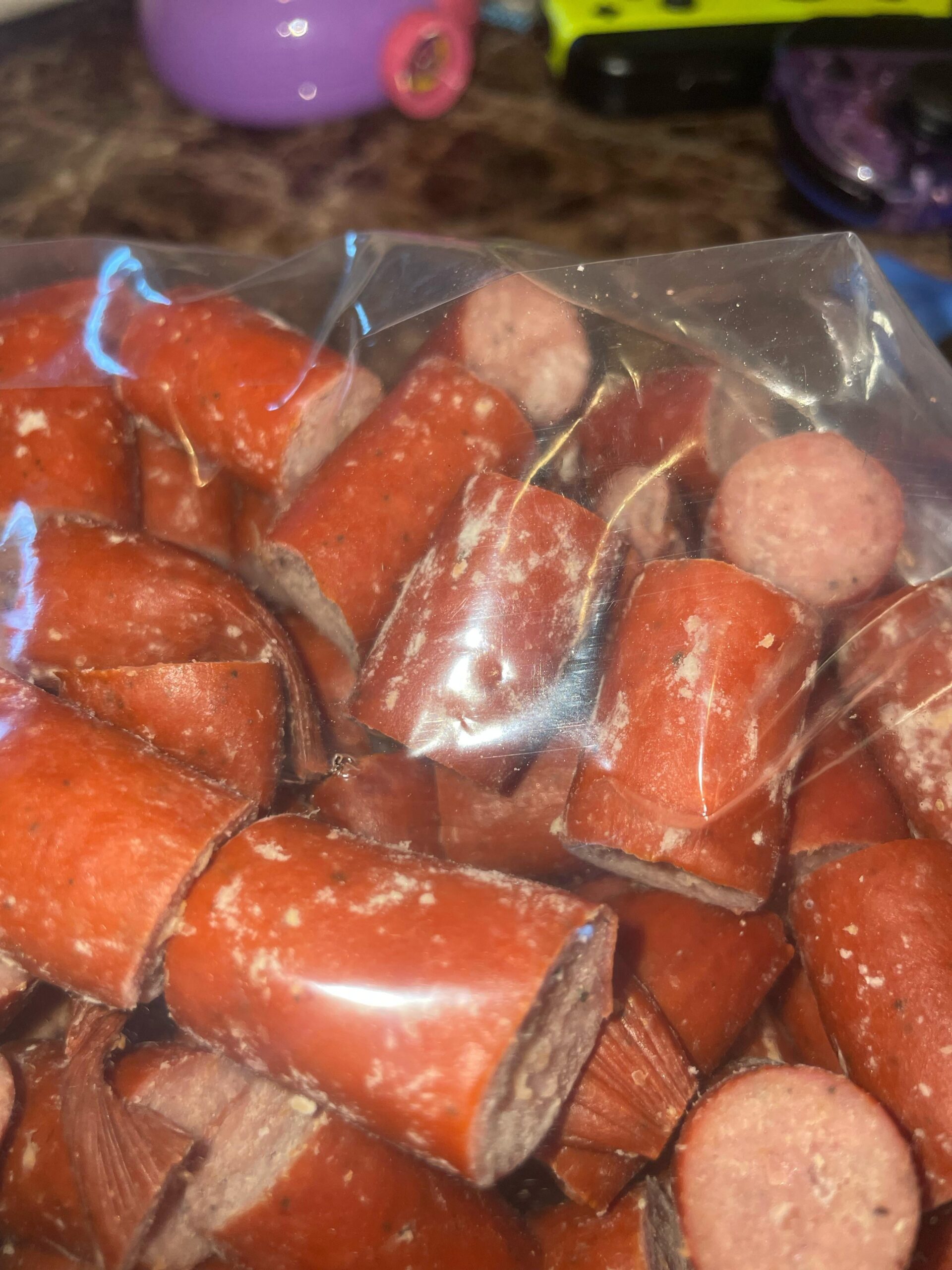 Howdy y’all like the title says I bought this on Sunday and transferred it from its original bag into a ziplock. Is that mold or fat or salt? I have no idea please help me!by Worldly_Comedian_154 1 Comment Sleepy-Blonde 4 months ago Looks like fat