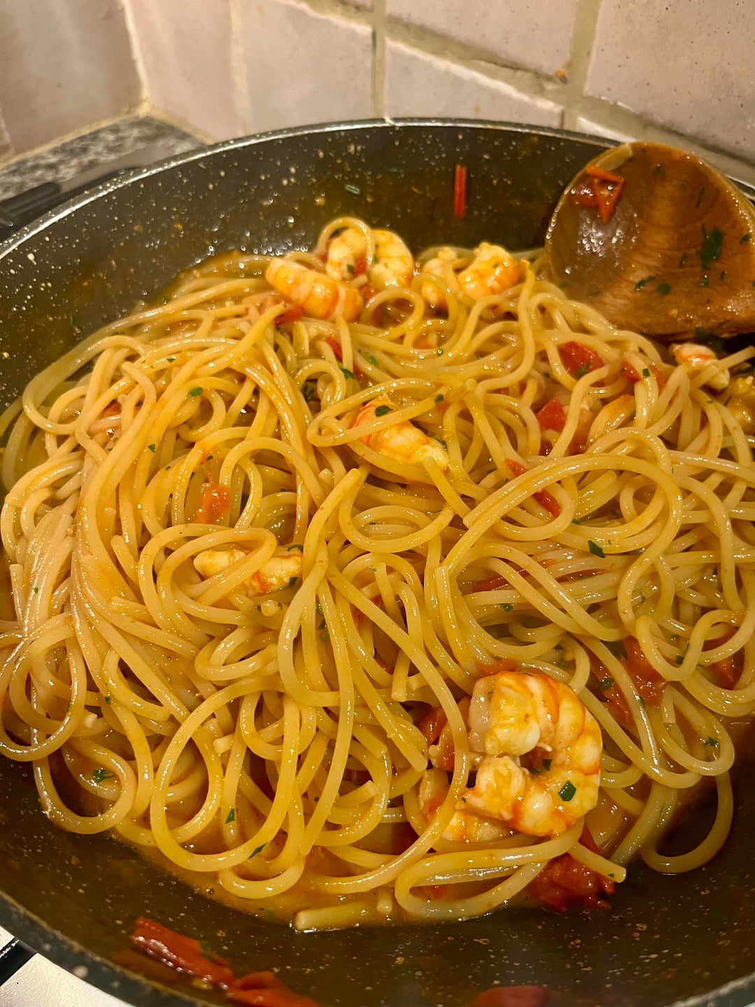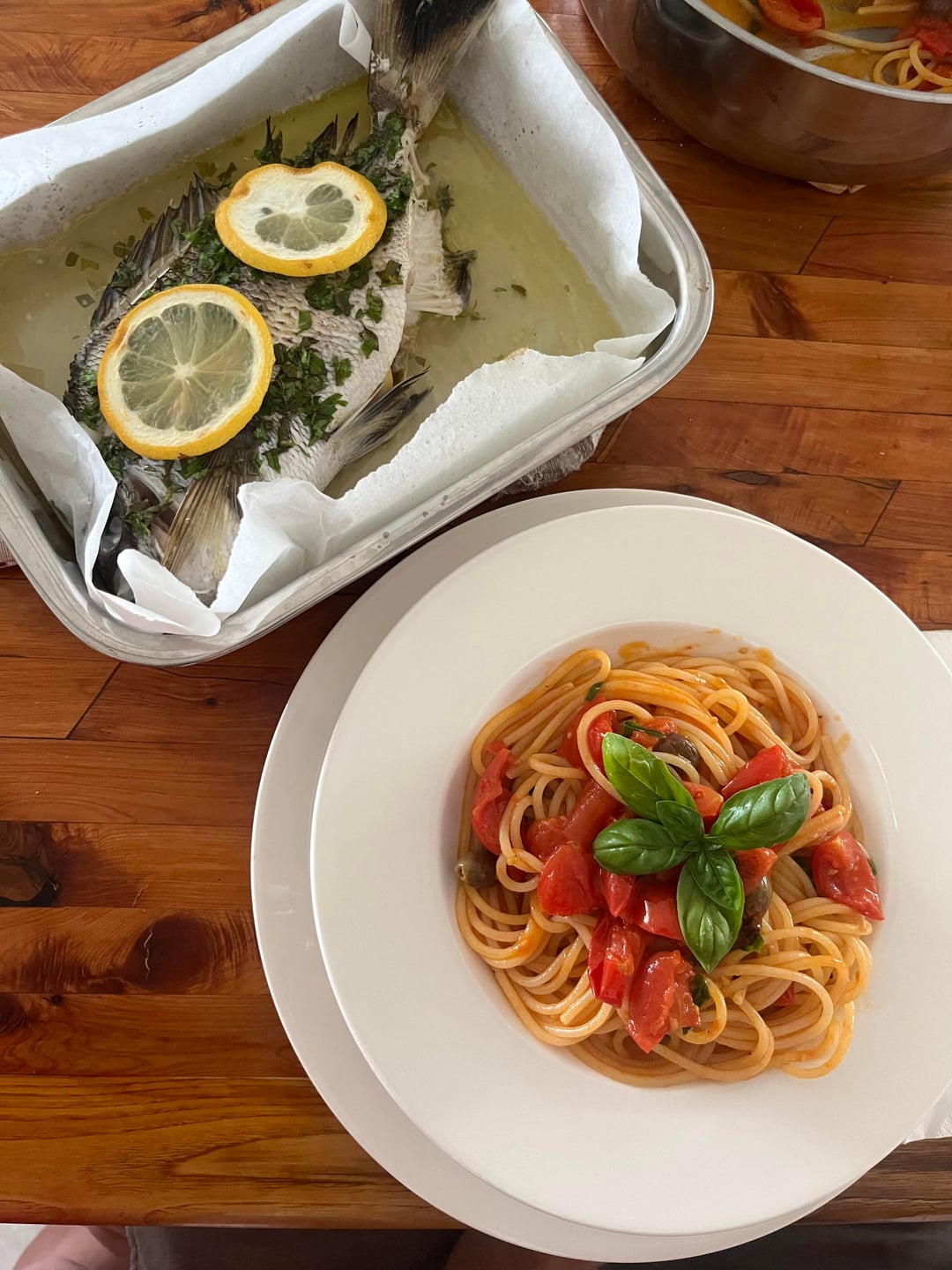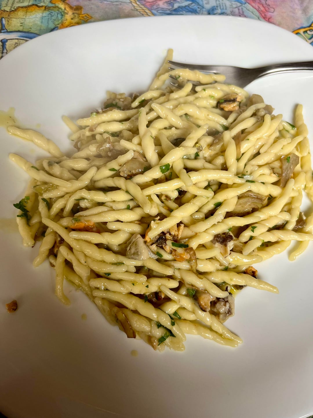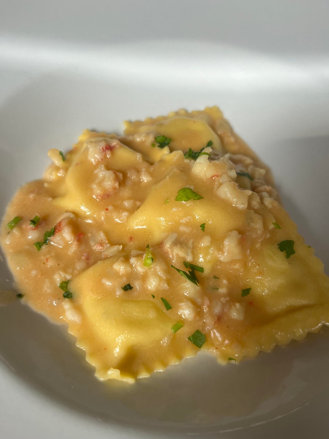 1) Pappardelle with ragù bolognese 2) Langoustine ravioli with bisque sauce 3) Tortellini with Parmigiano sauce 4) lasagna with white wild boar ragù 5) trofie with clams, muscles and artichokes 6) culurgiones (traditional dumplings from Sardinia filled with potato, pecorino, mint and garlic) with tomato sauce 7) gnocchi with 4 cheeses (Gorgonzola, parmigiano, pecorino and taleggio) 8) Tomato pasta 9) shells filled with ricotta, chards and spinach 10) red prawns spaghetti 11) puttanesca made with fresh tomatoes