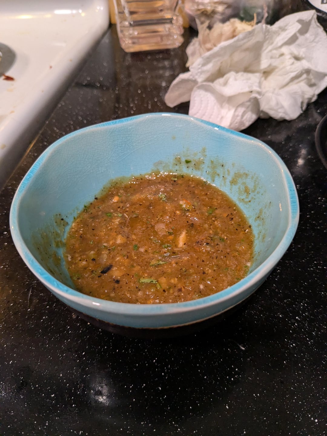 Raw: a bunch of cilantro, salt, pinch of pepper, pinch of sugar, and a tiny pinch of cumin