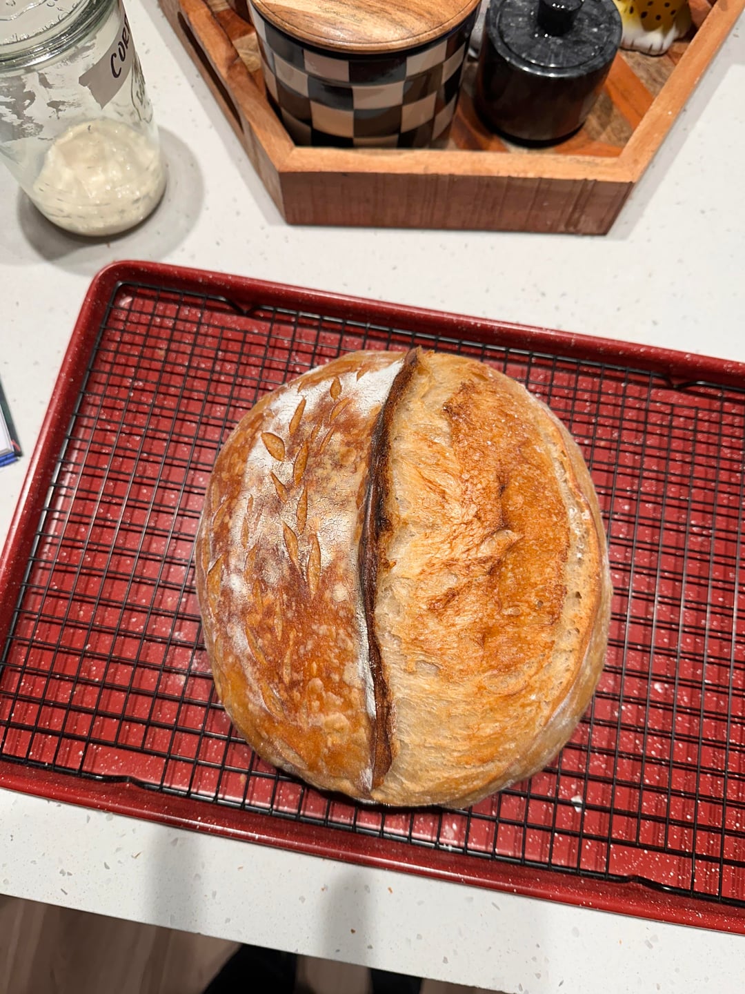 I think I did it? Seriously, last night I think I baked my best loaf yet. She was soft and pillowy in the middle, zero chewiness and absolutely melted in my mouth. She also had the best exterior, a thin crispy crust on the top and a bit thicker bottom that gave the best crunch. Also, she had the best oven spring I’ve seen since I started baking sourdough.