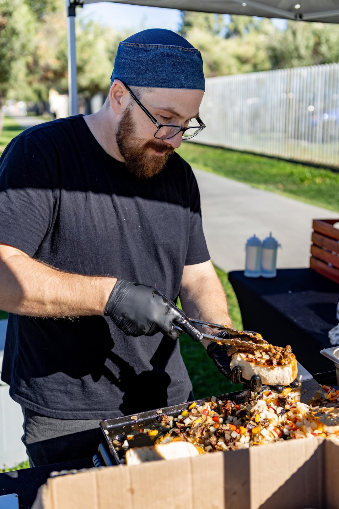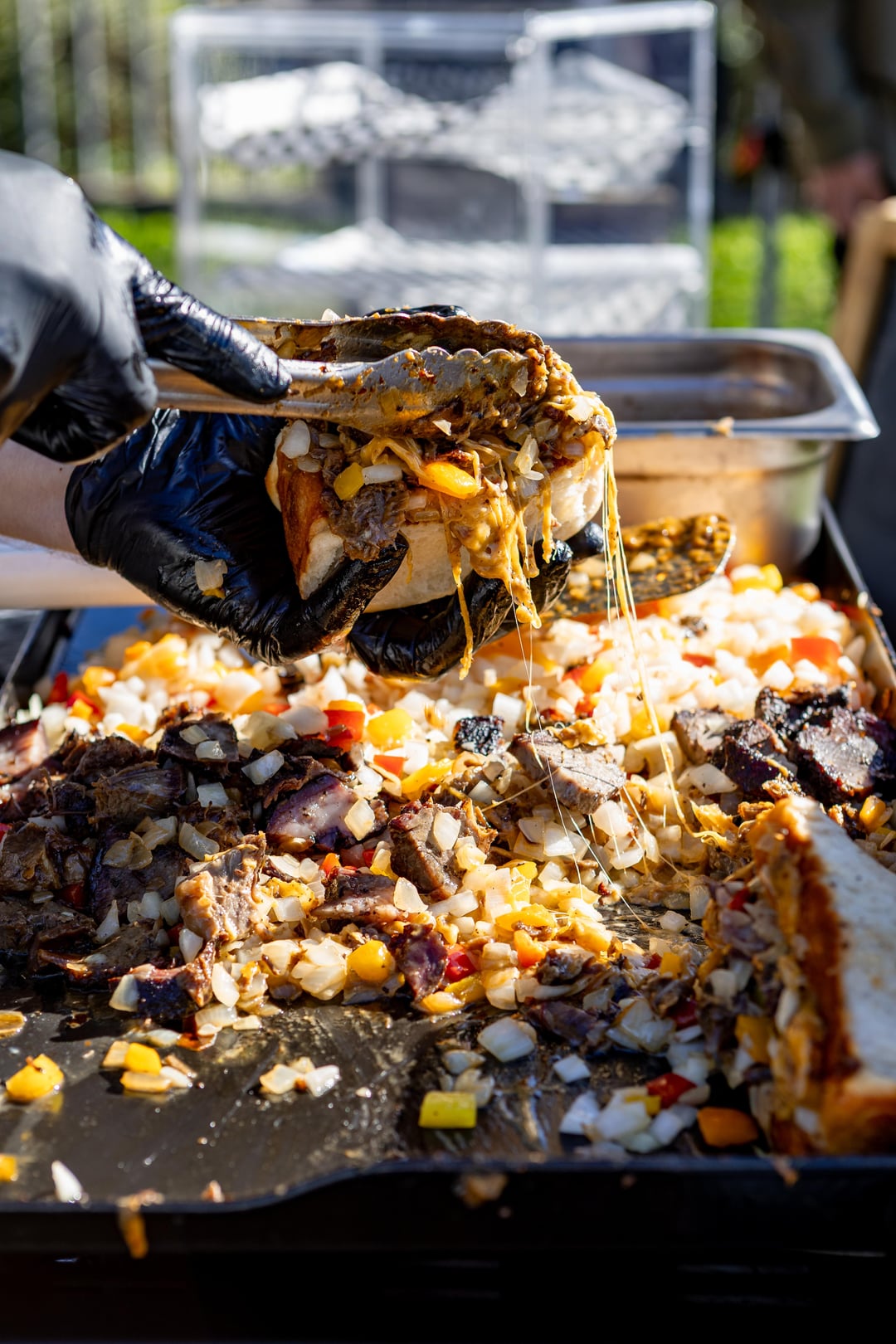 LA Cheesesteaks, smoked beef short rib, smoked and confit beef cheeks, onions, bell peppers, garlic and cheddar cheese on freshly baked, handmade rolls, with a handmade beef jus dipping sauce for $10, or 2 for $18.