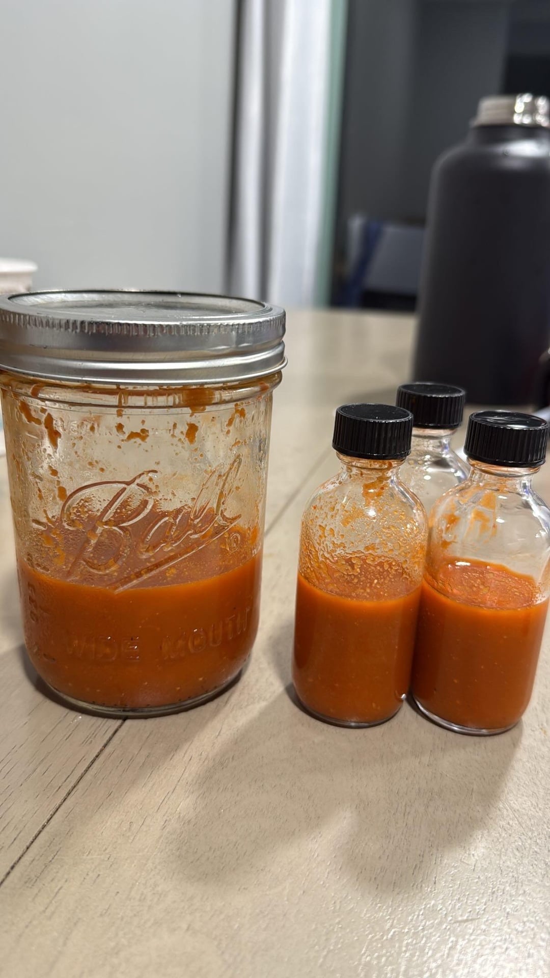 First time fermenting and making my own hot sauceJar 1: Jalapeño, onion, Garlic Jar 2: Chili peppers, Garlic Jar 3: Spicy CajunBelleJar 1 is my favorite!Cheers! by AirAdministrative237 Dining and Cooking