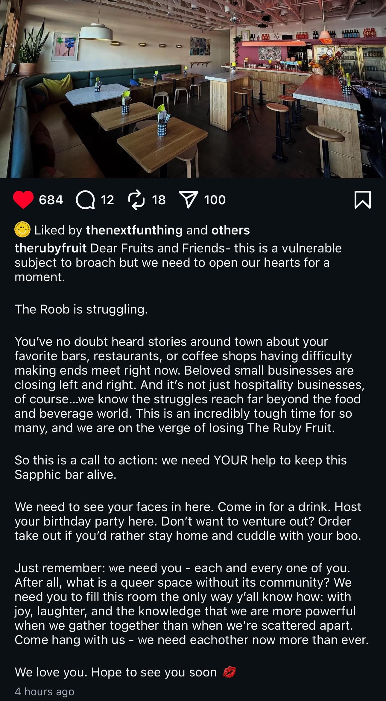 The Ruby Fruit is struggling