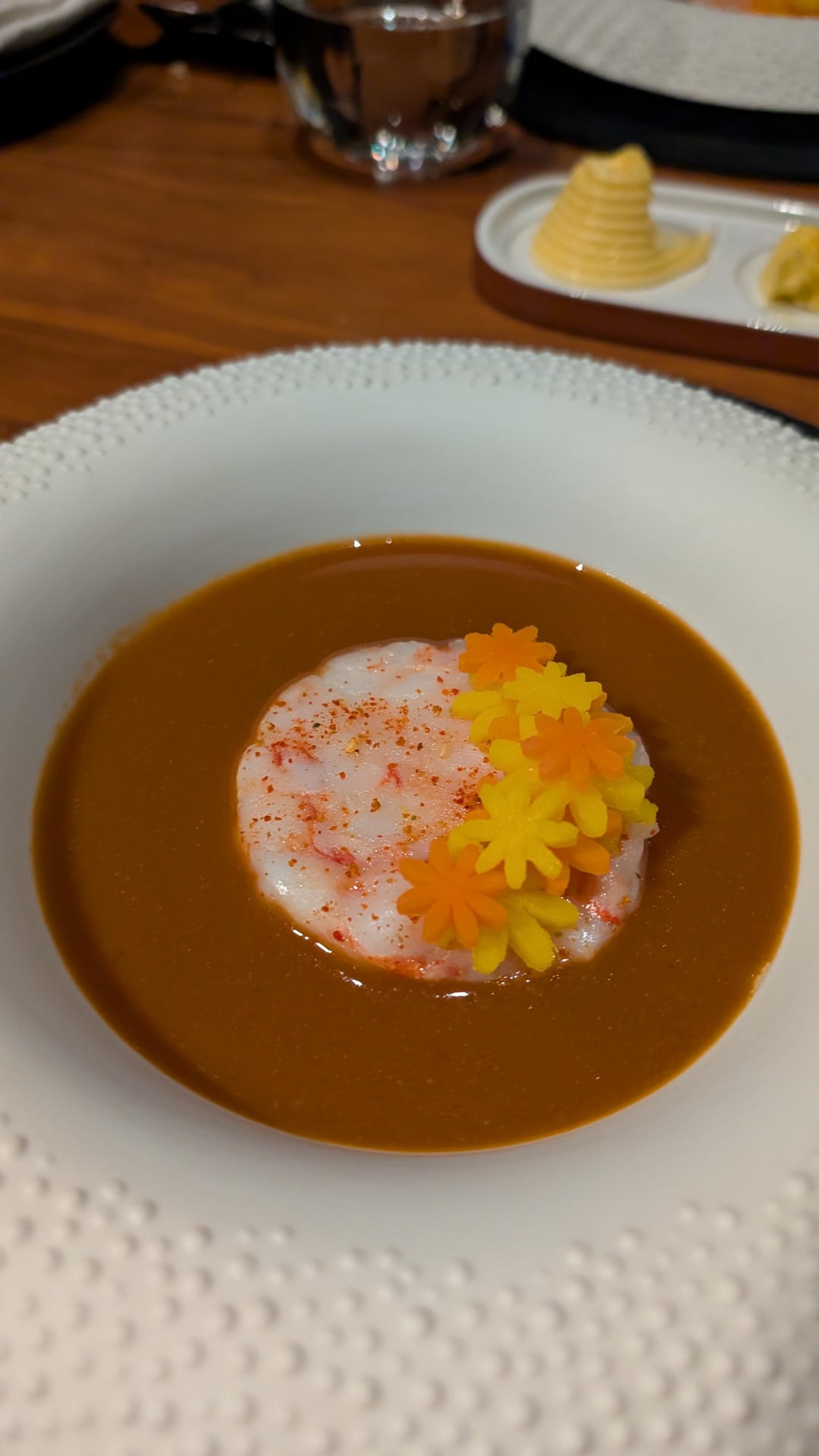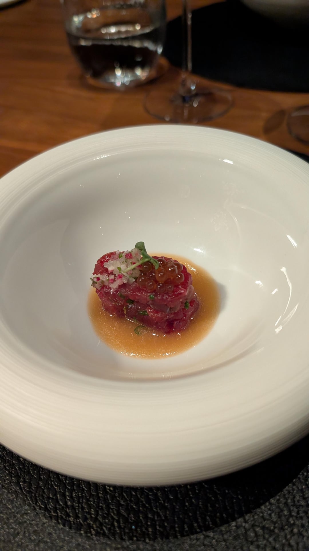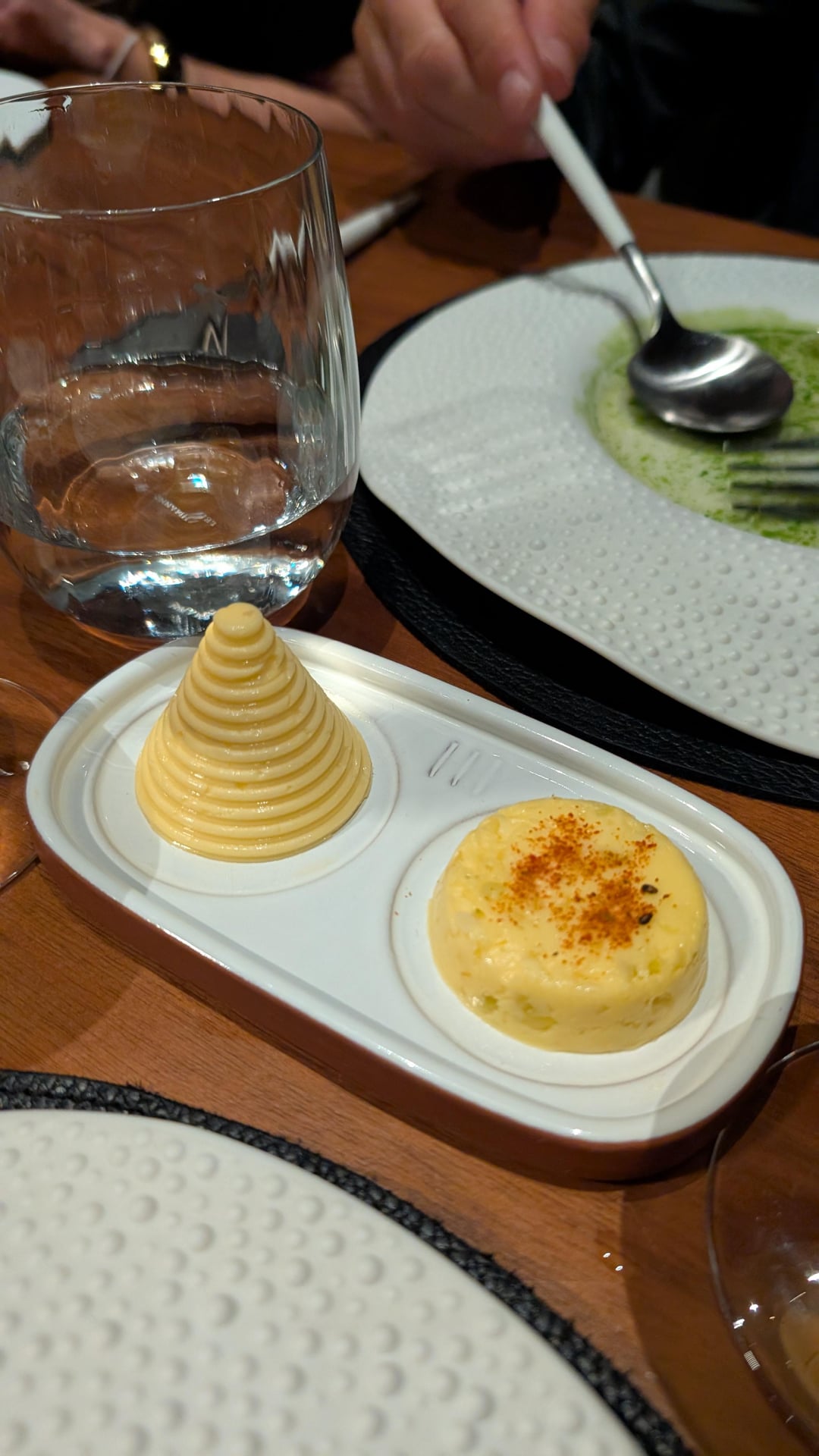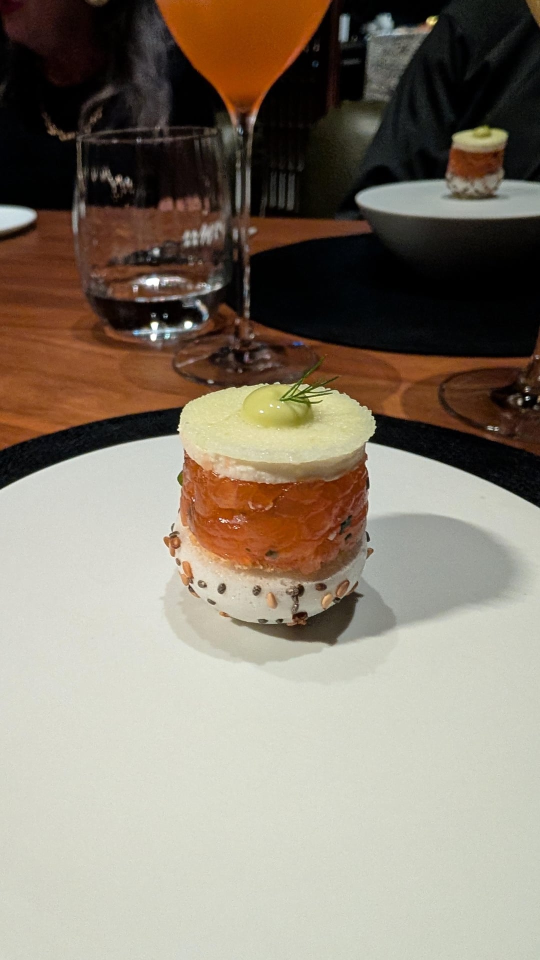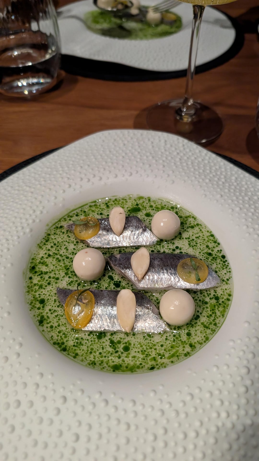 The food focuses mainly on elevating local ingredients, with flavors that range from classical french cuisine to japanese inspired: foie gras with cherries and brioche, a crab cake with an amazing shrimp bisque that blew my mind, an "everything bagel" with smoked salmon, local sardines in a tomato dashi and turbot with a plate of greens that tasted like spring. The wine pairing was also very decent, with wines from both abroad and Morocco.