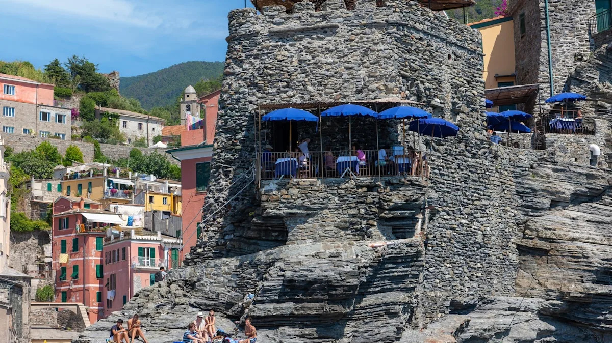 As you savor antipasti from neighboring Ligurian Riviera towns like Monterosso anchovies, Porto Venere mussels, Elba rock octopus, and Santa Margherita pink shrimp, with regional wine seemingly curated to pair each snack, Steves says that “views of the ancient vineyard terracing all around you make the experience a highlight.” But the Europhile is being modest with his description. In reality, you’ll want to pinch yourself as you’re perched on one of the restaurant’s three open-air decks, somehow hovering out from craggy cliffs into panoramas of splendid azures of sea and sky and cinematic sunsets. Your backdrop for this view? The medieval Doria fortress, which just happens to be fashioned out of the sandstone landscape.