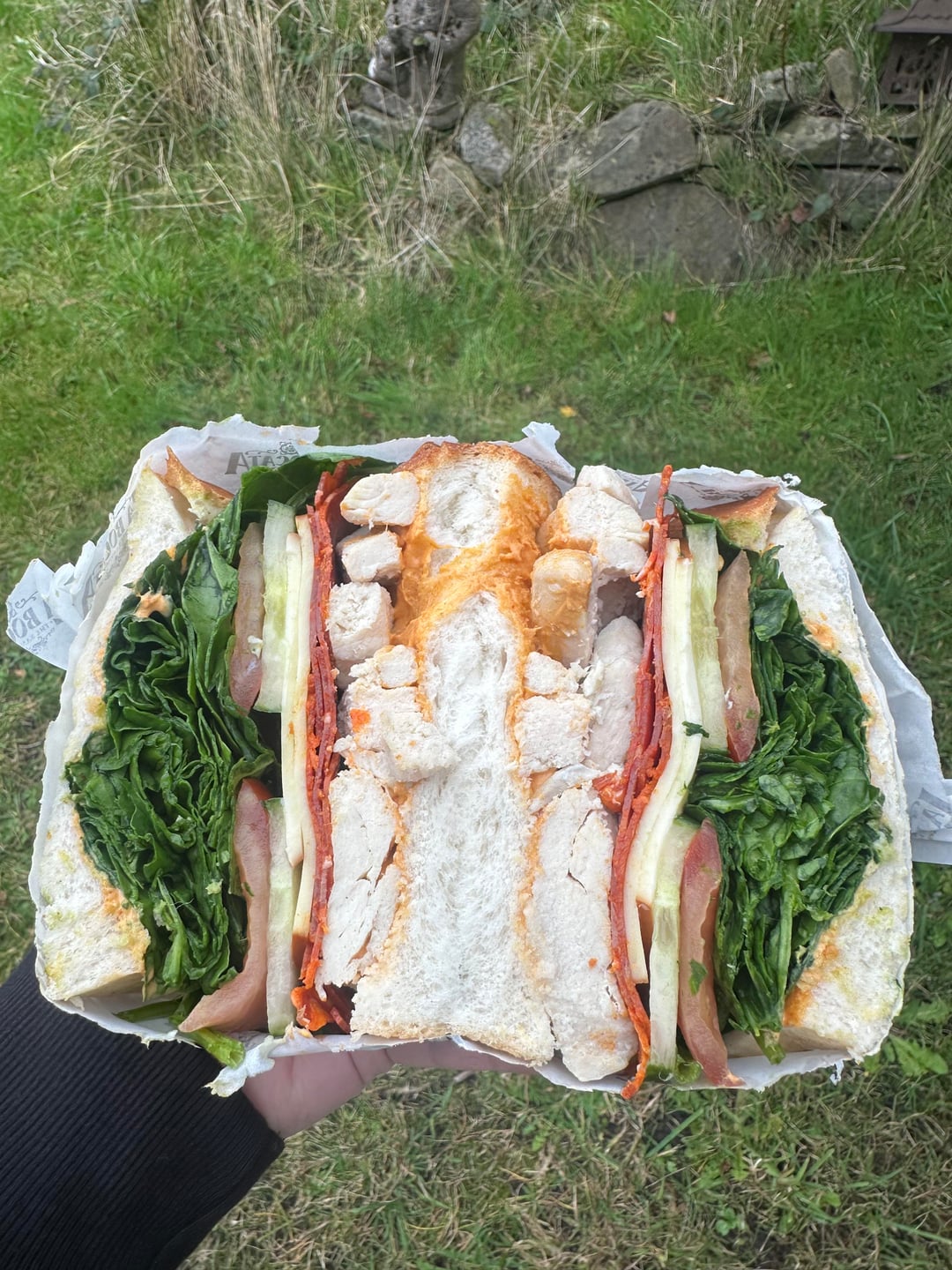 This sandwich was bought from La bocata in South Wales.Chipotle and lime aioli mayonnaise, strips of chicken breast, sliced chorizo, smoked cheddar with paprika, cucumber, tomato, and spinach. by Everfr0st666 1 Comment Shoddy-Biscotti-1194 3 days ago Jawbreaker….