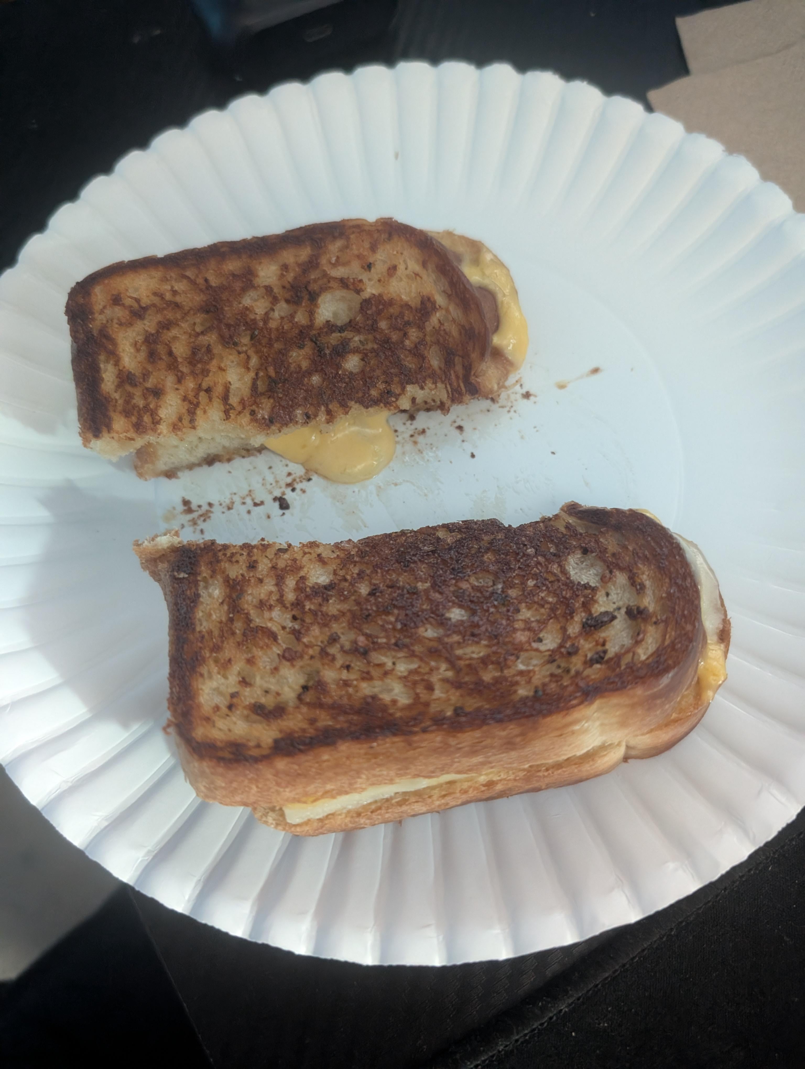 Sourdough bread, Garlic Butter, American cheese, Cheddar with Parmesan Notes.