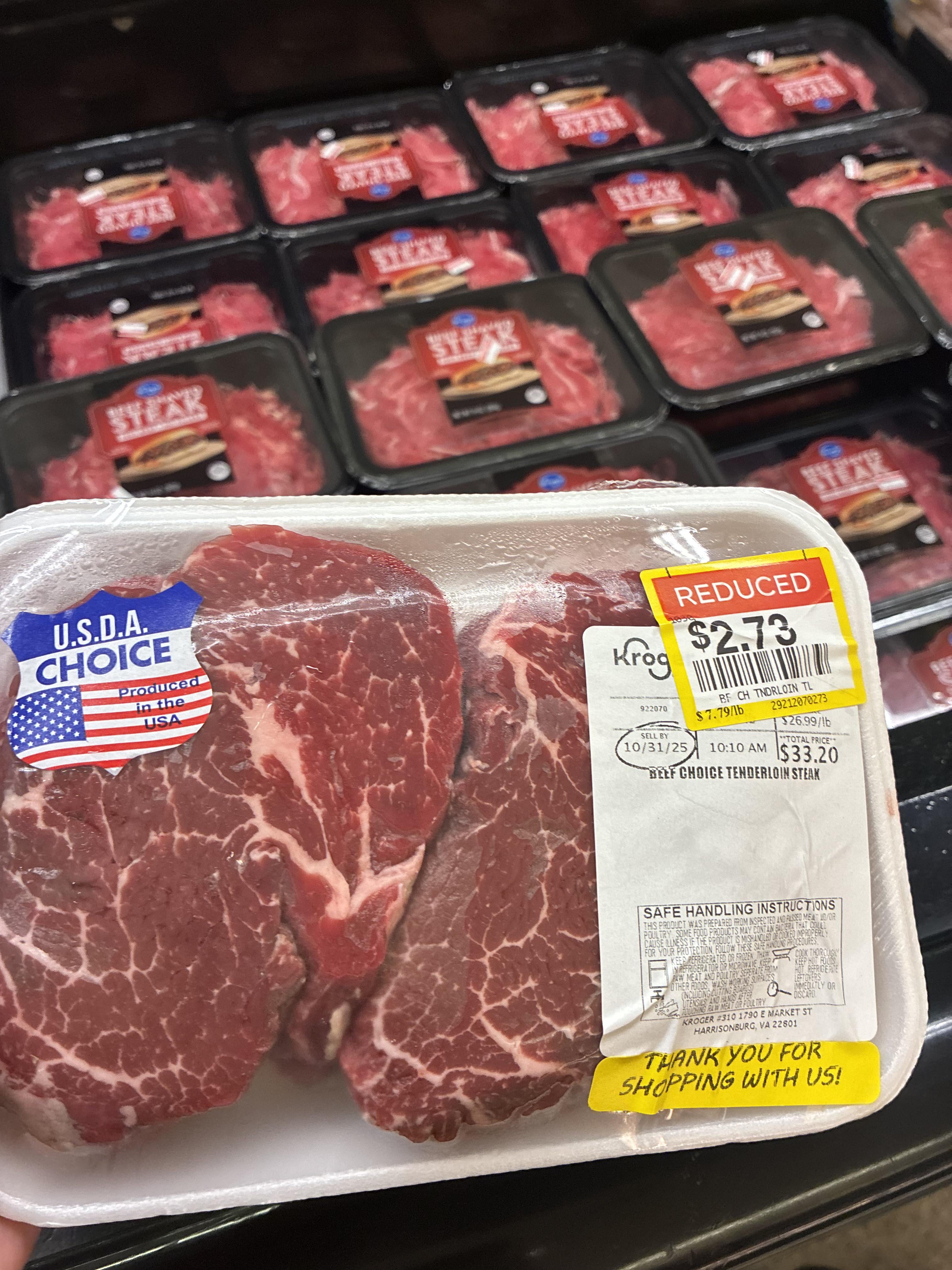 Man, when I was broke and worked at Kroger I used to mark down steaks, ground beef all sorts of stuff for myself. Don’t think I ever marked down a filet to 2$ though lol
