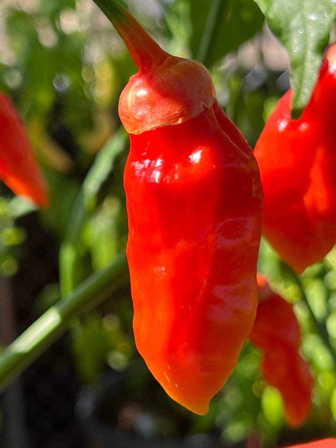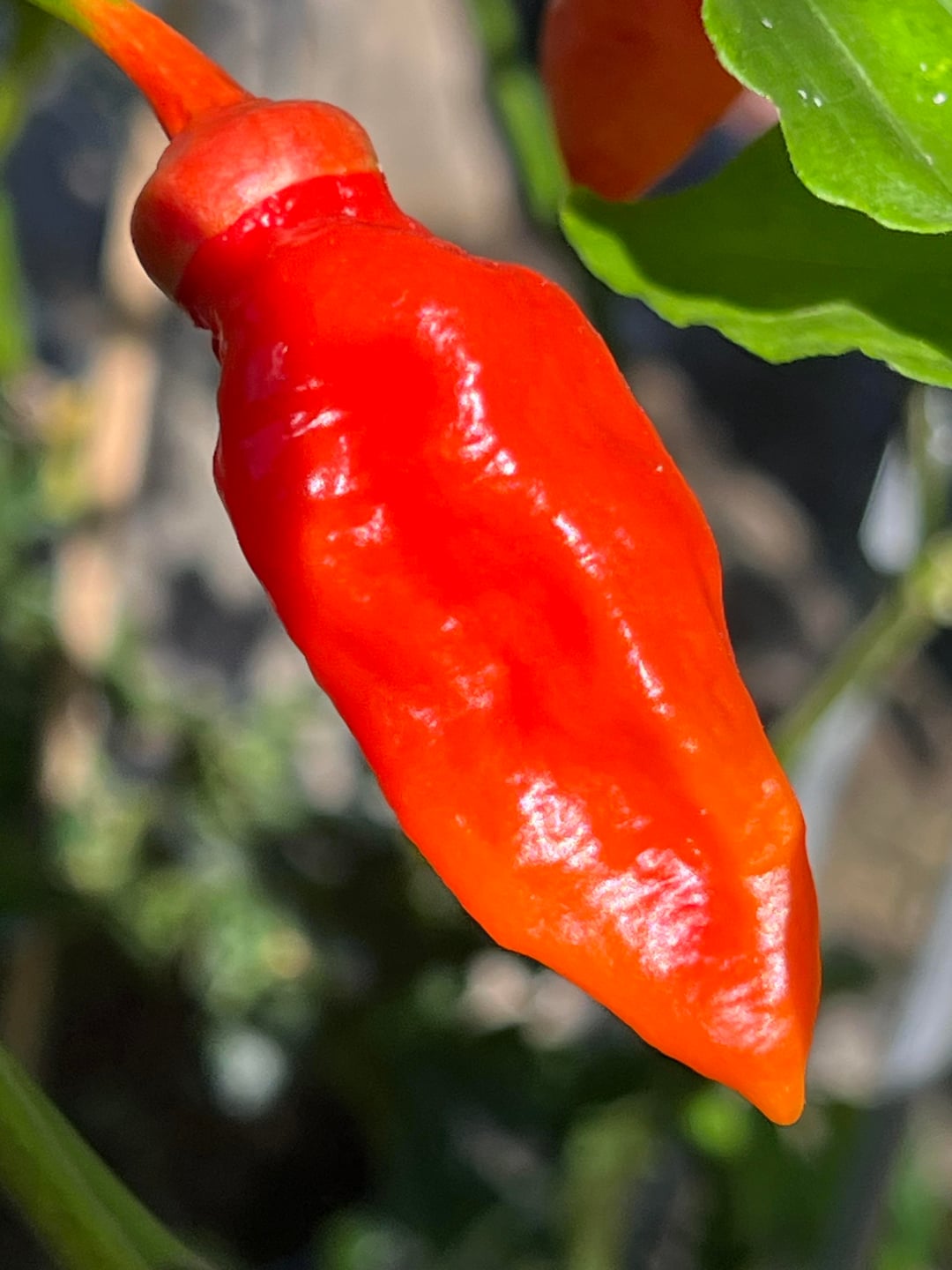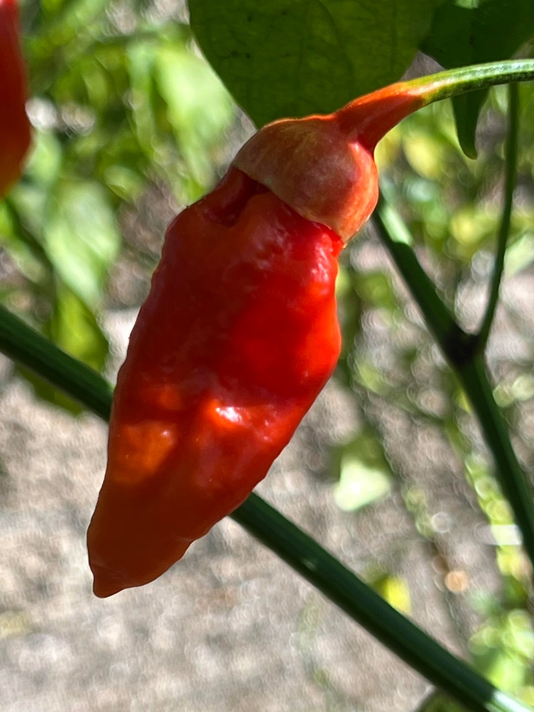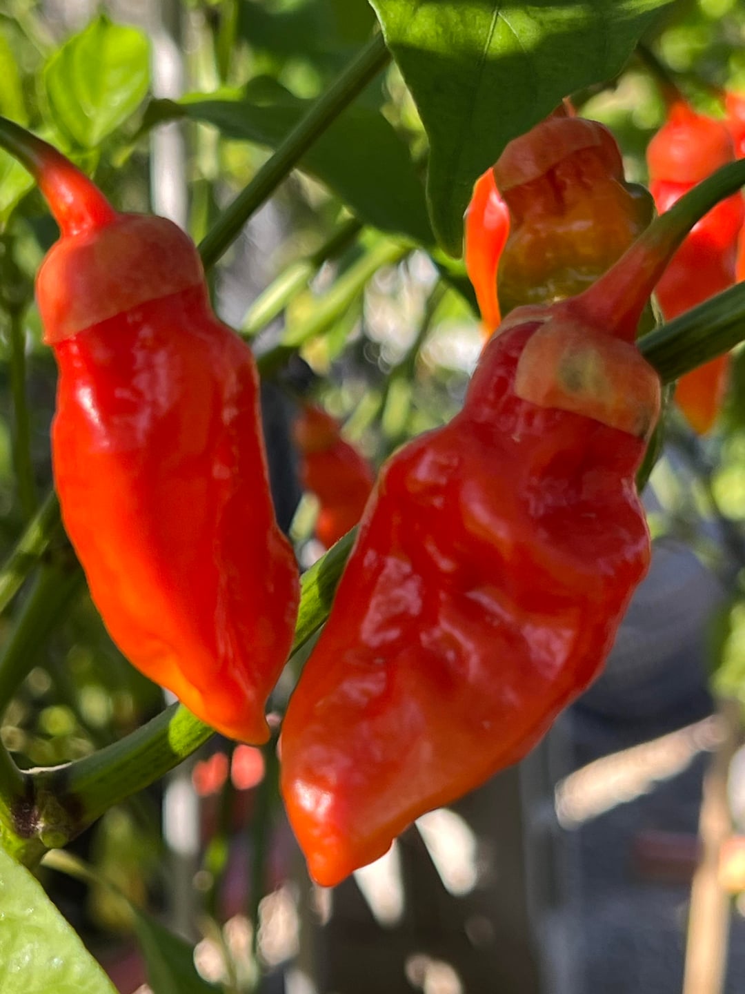 I planted these from seeds- they were labeled as red ghost peppers, but they don’t look like my other red ghost peppers and these have a very unique looking round “cap” towards the stem. I tasted them and they are reaper-level hot.