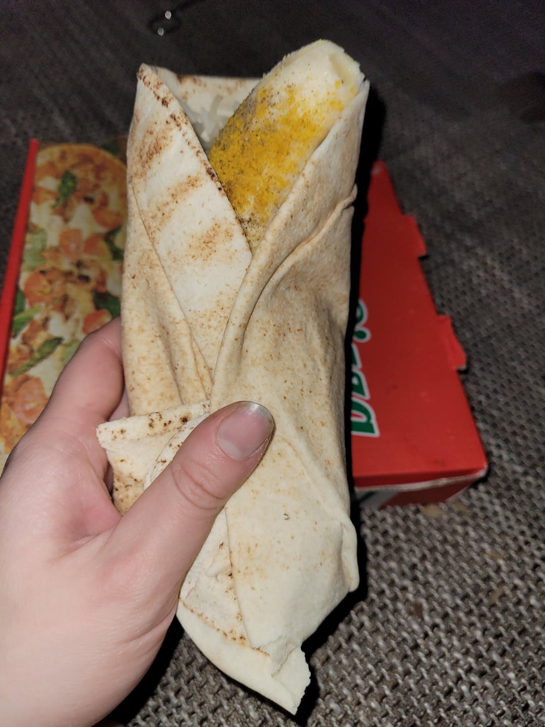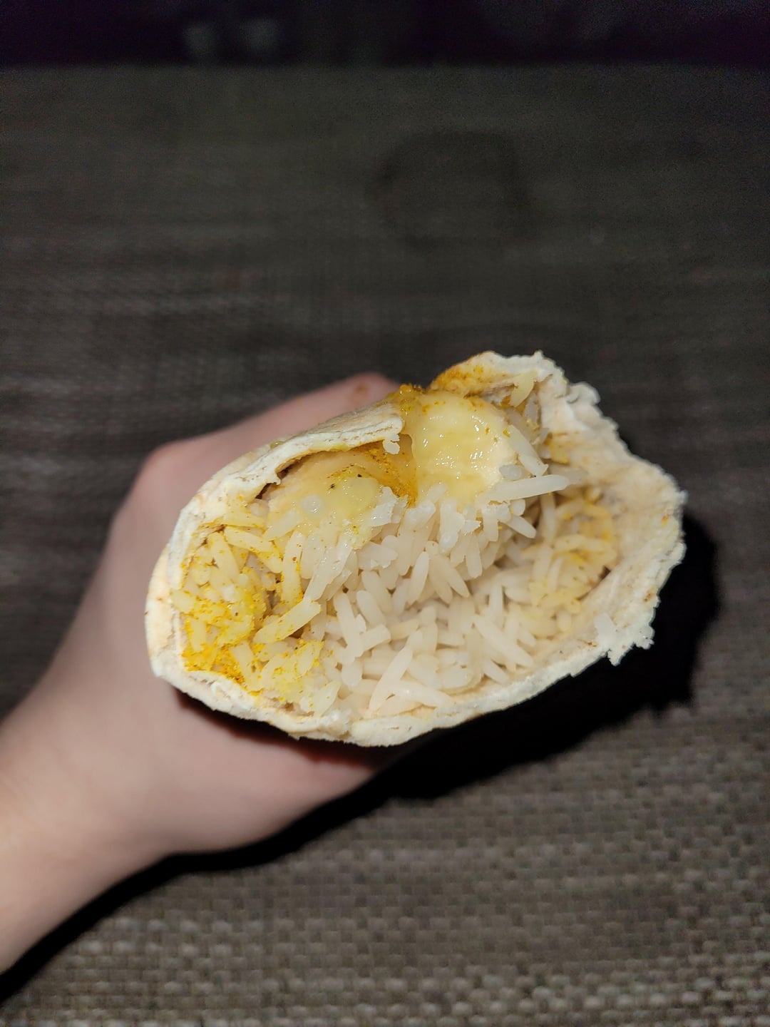 Wrap with Banana, rice, salt, pepper and curry powder. 2/10 It was suprisingly tasteless and not too dry because of the banana. 100% struggle meal, do not recommend.