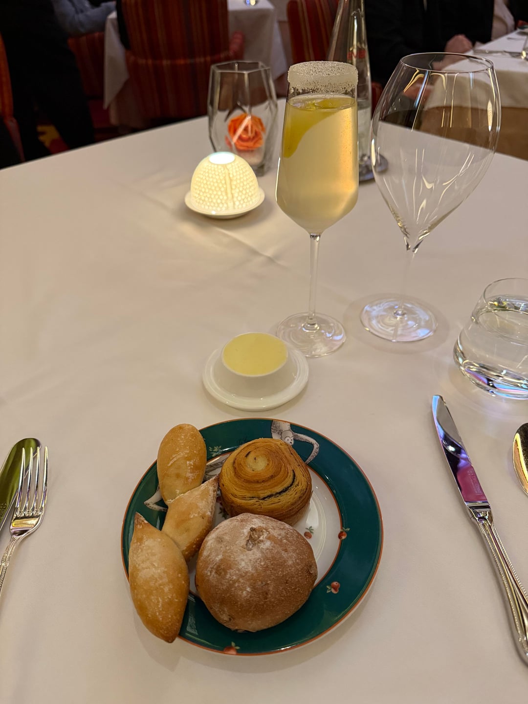incredible black truffle croissant (!!!!), cherry wheat roll (!!!), good plain baguette, and ok butter.