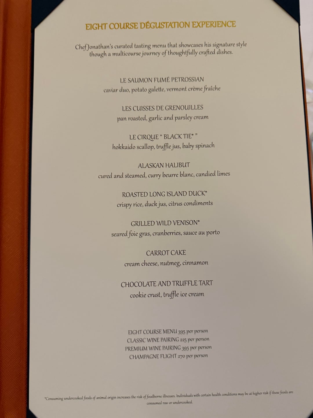 8 course $395 + classic wine pairing $225