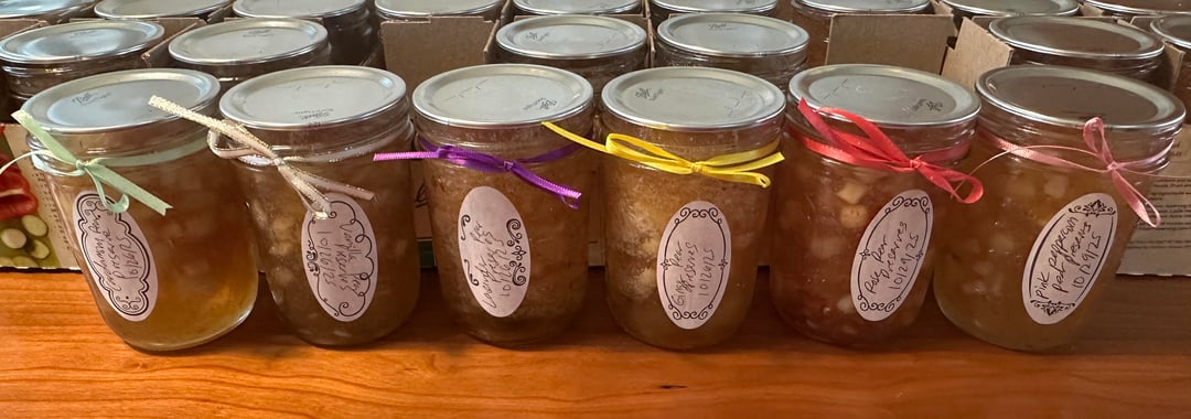 My goal was to make a variety of preserves that highlight the pear floral flavors, while choosing flavors that are not the standard pear pairings.