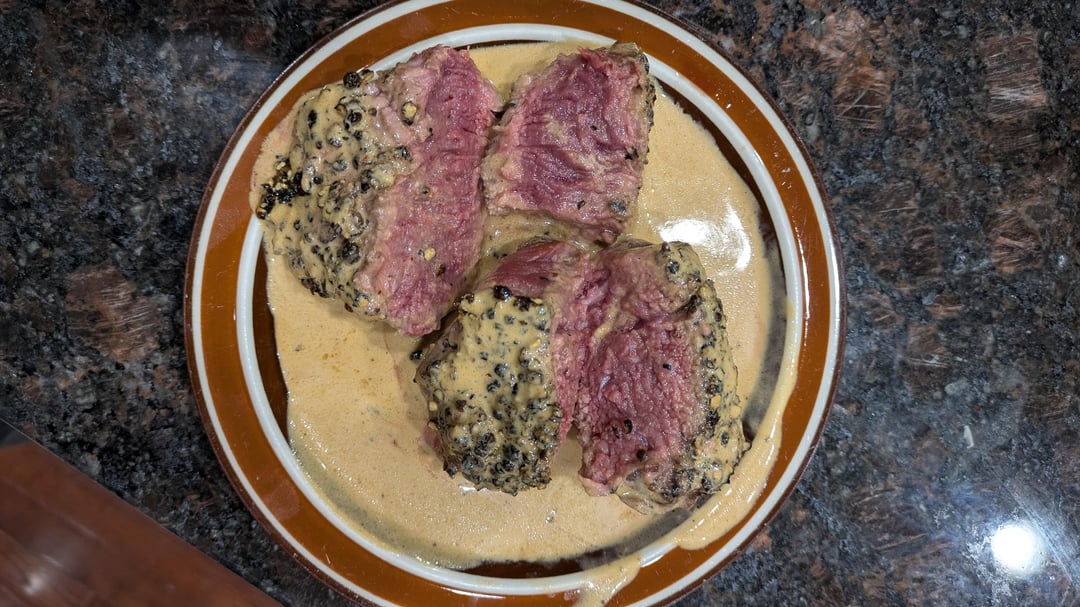 Sauce looked better yesterday but steak is 100x better cooked