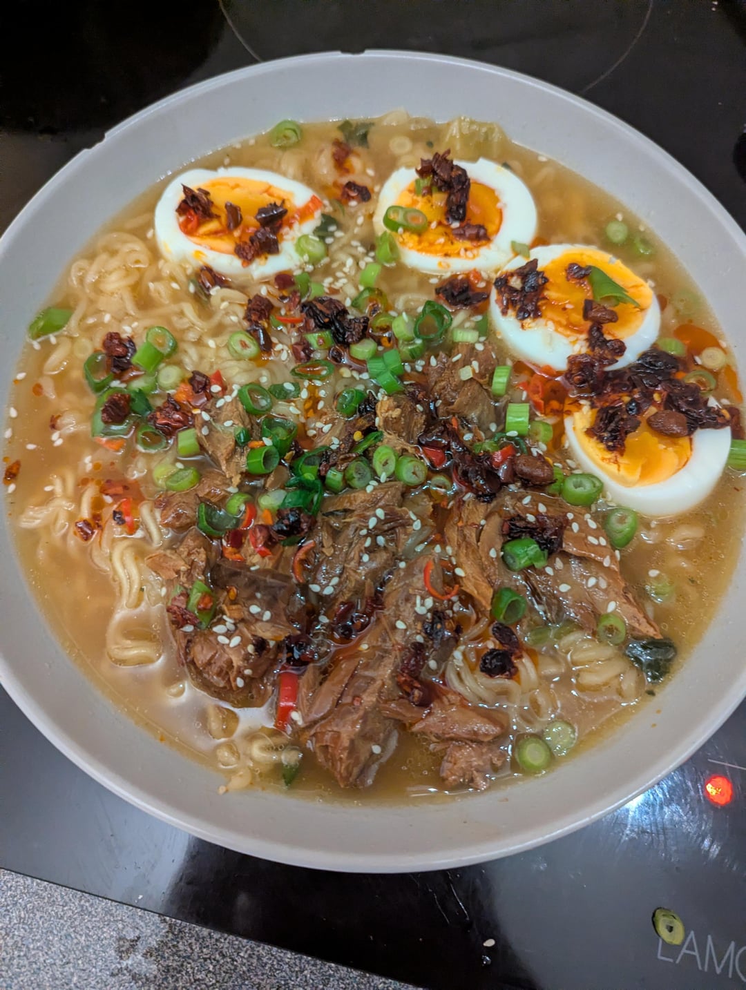 boucblanc 3 weeks ago Poured the teriyaki sauce from the tin in, did eggs, added lemon, chilli, Lao gan ma, spring onions and chilliPretty blood good