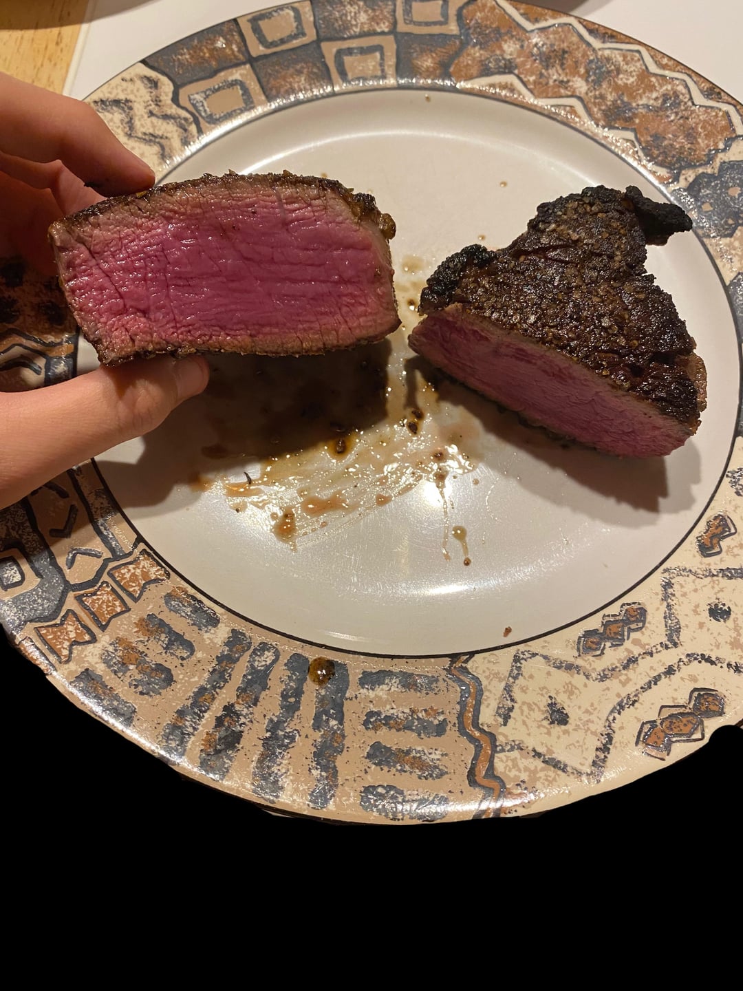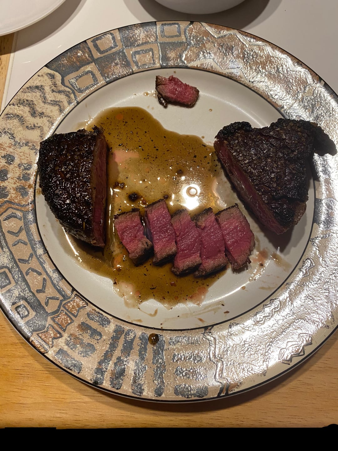 tbinus78 3 months ago That’s like $65-80 probably if it’s a good prime variety. Wagyu $100. How many oz? Looks great. Really nice work.