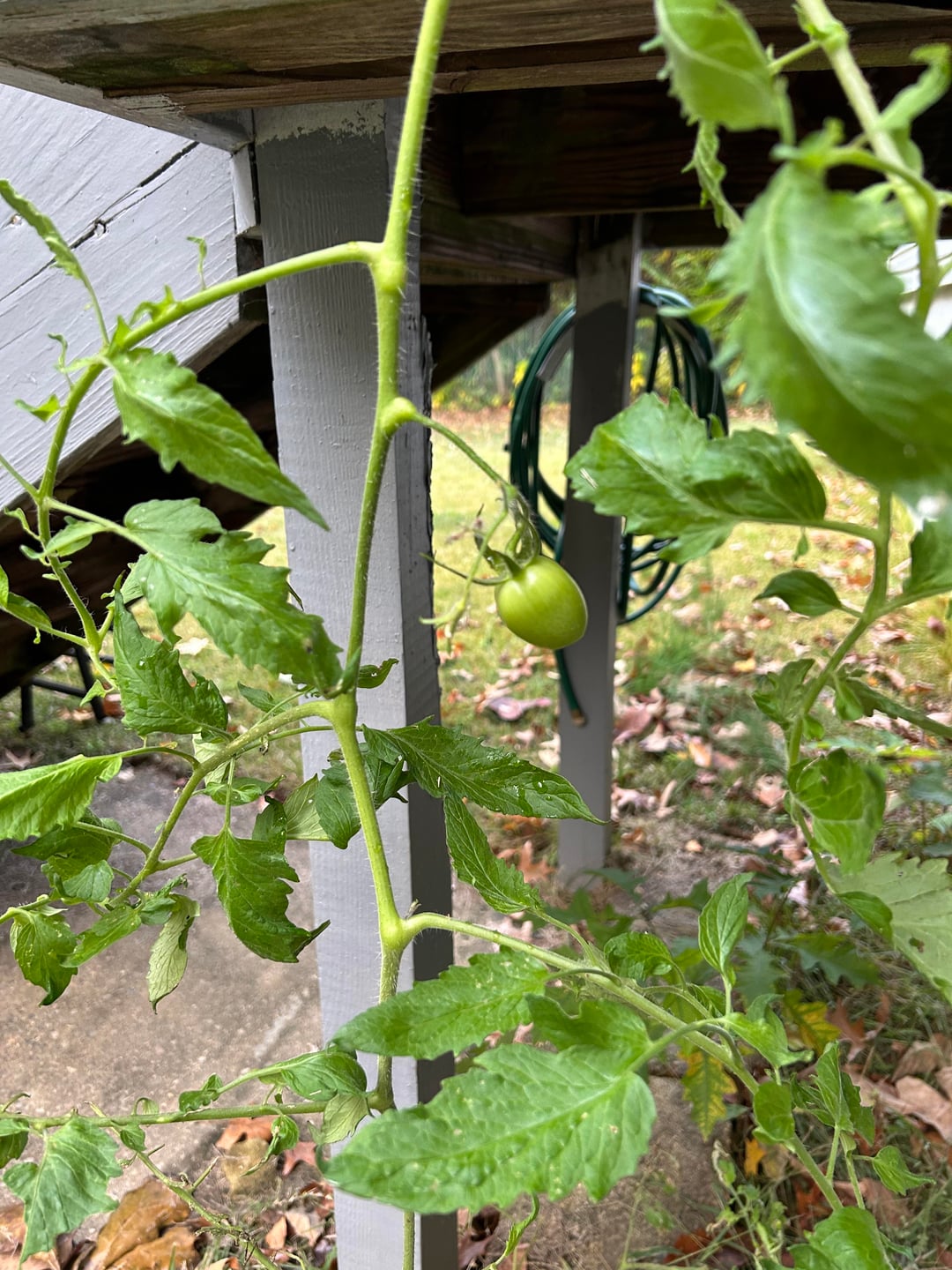 Appreciate the time you have left there’s not enough sun to help fix transplant shock and it’s on its way out anyhow. Veryyy cool tho! Also don’t wait till it’s red the moment you see even a touch or orange in it, pluck it. You want to be able to take that one in asap. If you bring the mostly green ones inside and put them in a paper bag they will become red within a couple days. Tomatoes release something called ethylene which causes them to ripen if concentrated