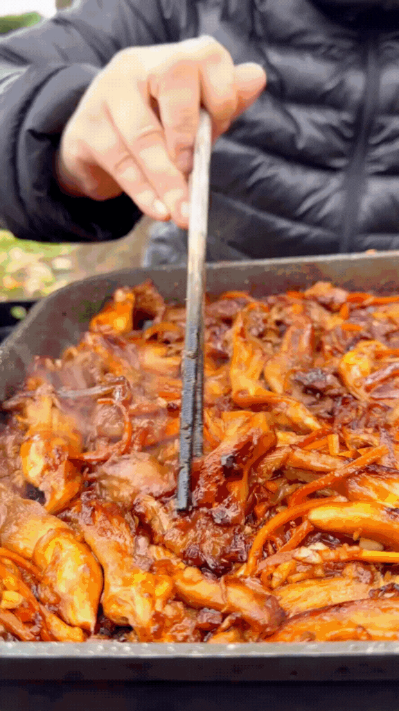 1. Chop the garlic and the pear finely. Cut the carrots and onion into thin strips. Cut scallion into small pieces. Hand pull the oyster mushrooms into strips. 2. In a big bowl, add mushrooms, carrots, onion, pear, garlic, soy sauce, sugar, sesame oil, mix it well and let it marinate for 1 hour. 3. Heat up a griddle pan over high heat, when it’s hot add oil, add the marinated ingredients and pan grill them until most of the sauce is gone and the mushrooms are slightly charred and brown on the outside, add scallion and enjoy!
